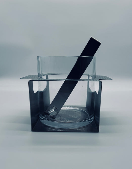 Seau à glace postmoderne, verre et acier, Roberto Sambonet 70s