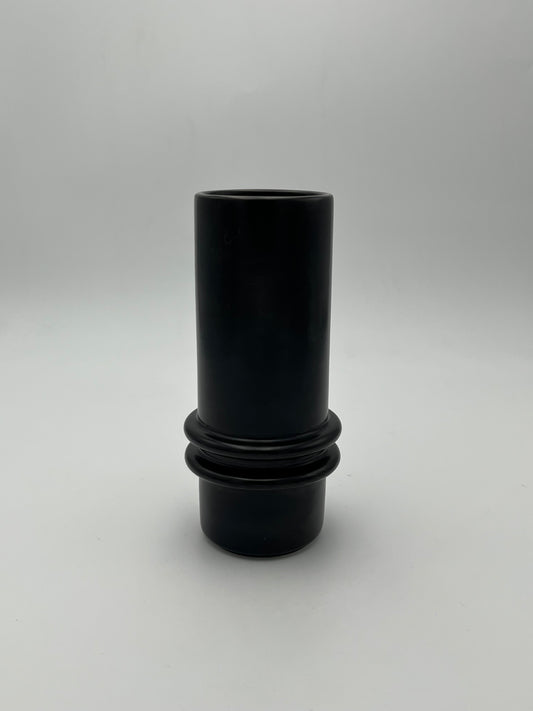Vase noir mat cylindrique, motif totem, Cuno Fischer, Rosenthal, 70s