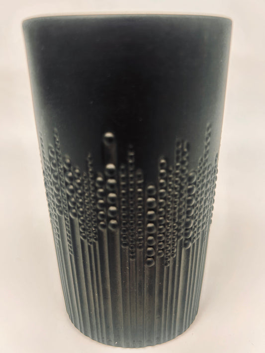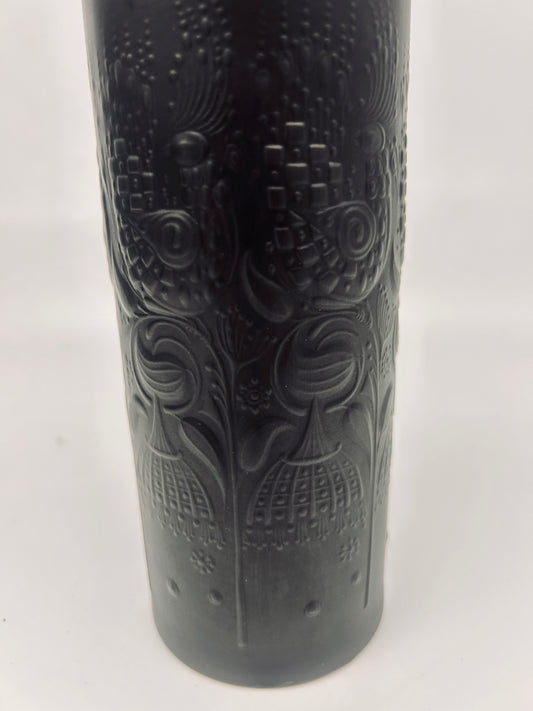 Vase noir mat cylindrique motif nature "La flûte magique", Bjorn Wiinblad, Rosenthal