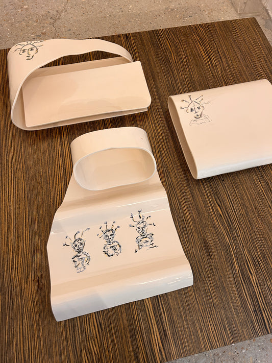 Assiette de présentation alien ou avatar en céramique, E=X2, Sinicropi, 2013