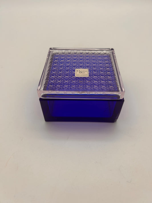 Boite bleue en cristal, motif cannage, Christian Dior, 70s