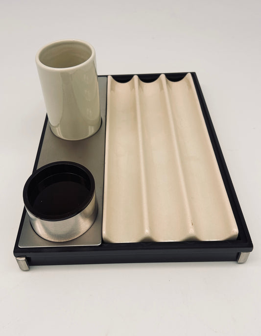 Set de bureau, porte stylo, Roberto Sambonet, ligne Scacchiera, 70s
