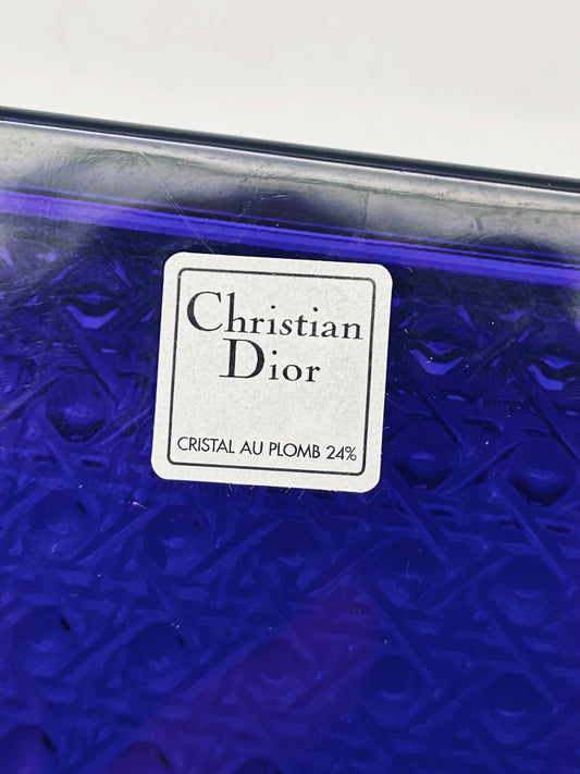 Boite bleue en cristal, motif cannage, Christian Dior, 70s