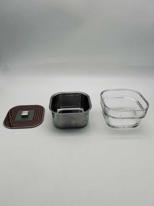 Seau à glace postmoderne, verre et acier, Roberto Sambonet 70s