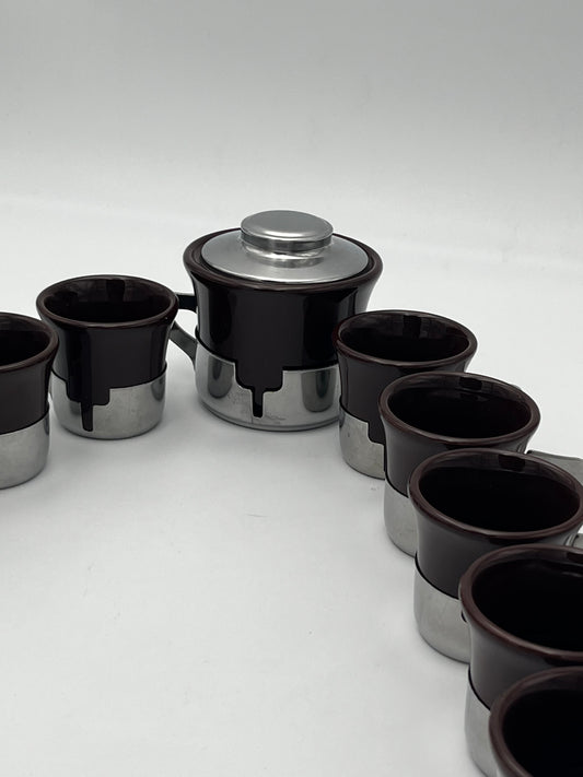 Tasses à Café Ocre Céramique et Inox, Inoxriv, Italie, 1970