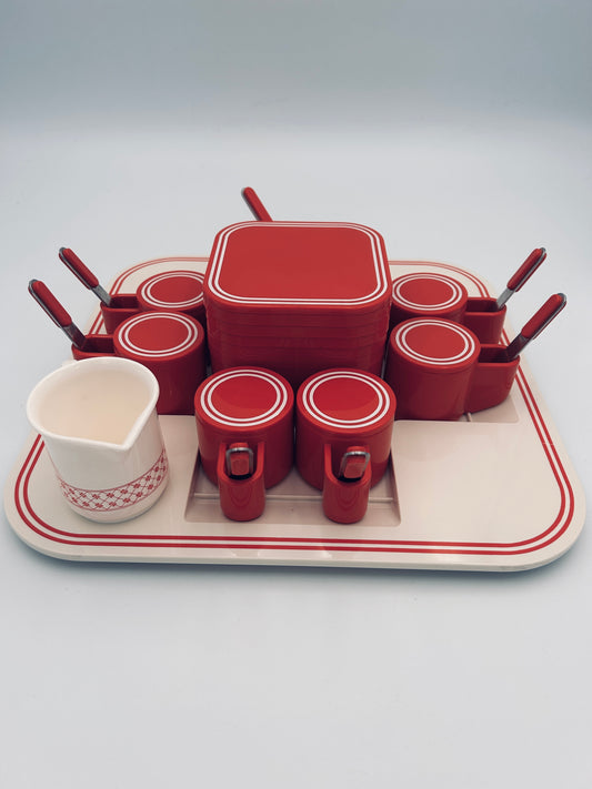 Set à café rouge et plateau, Morinox, Italie, 70s