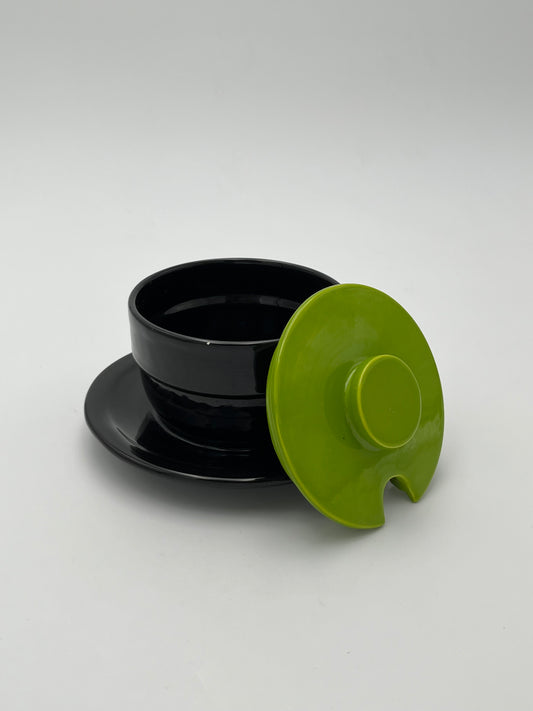 Service à café en céramique émaillée verte, Colette Gueden, Primavera France, 60s