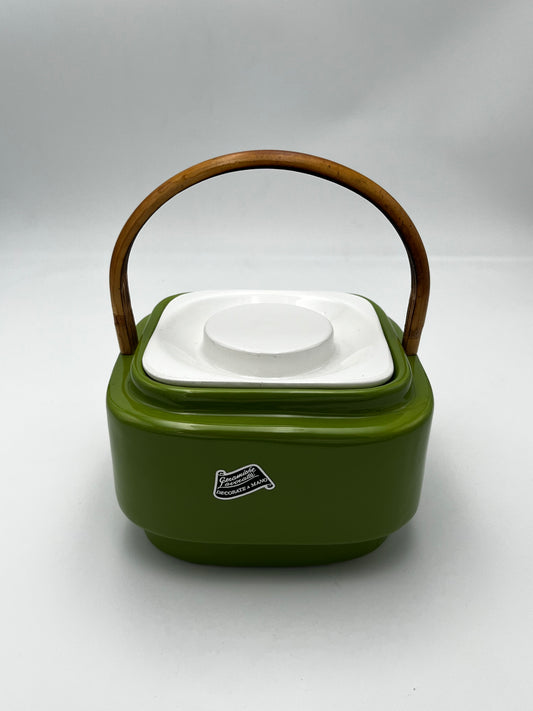 Boîte en céramique, anse bambou, Lavoratti, Italie, 70s
