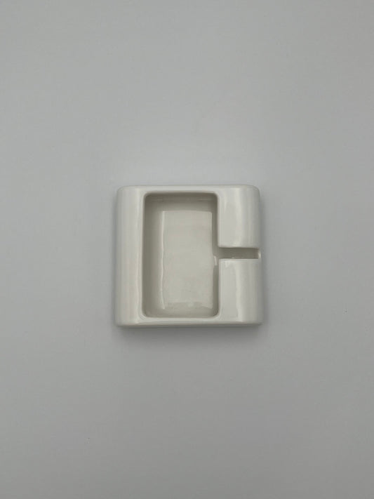 Cendrier Carré Blanc Céramique, Sicart Cartigliano, Italy, 70s