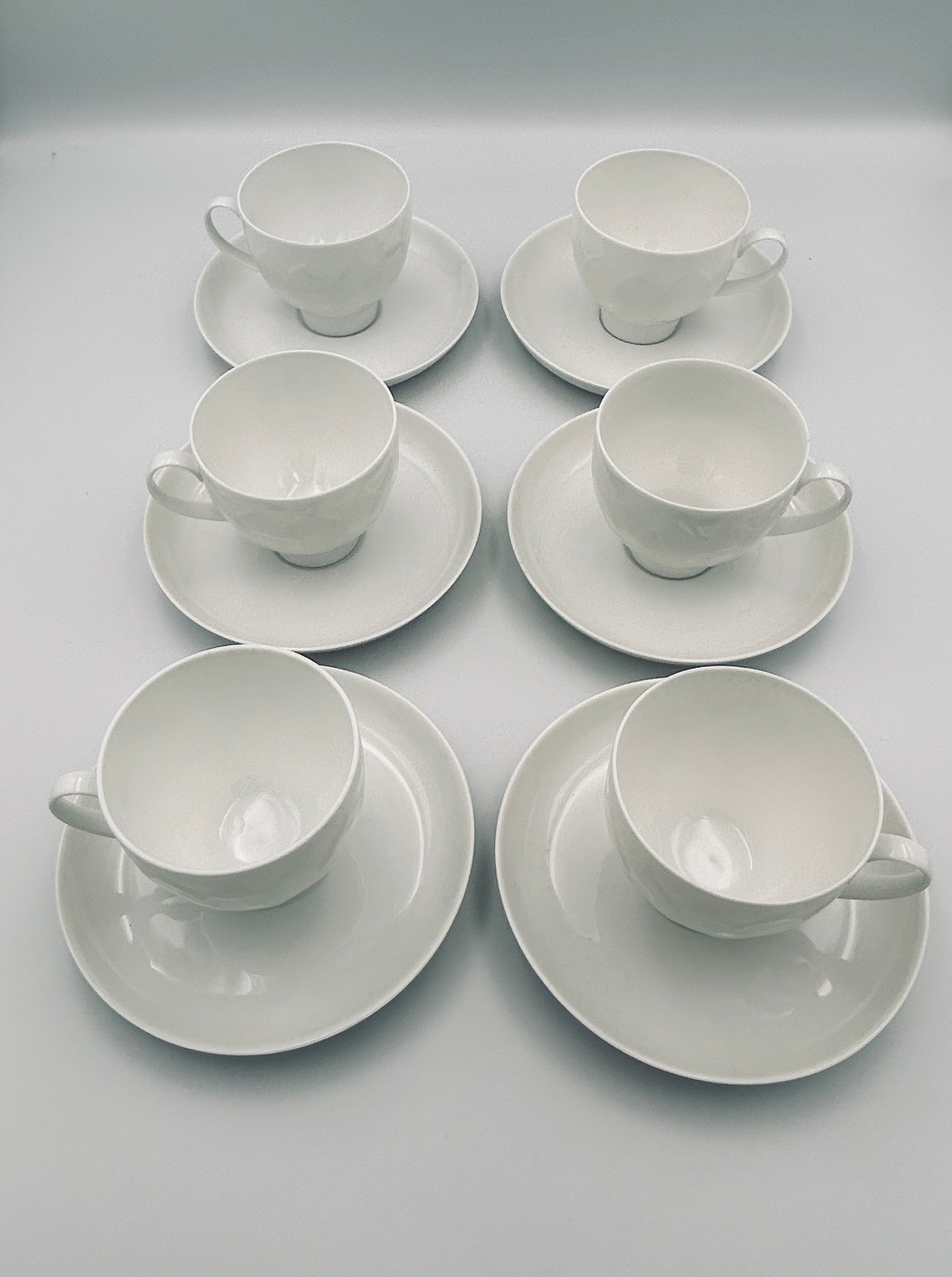 Elegant set of six Rosenthal porcelain coffee cups, from the famous Lotus line designed by Danish artist Bjørn Wiinblad in the 1970s.