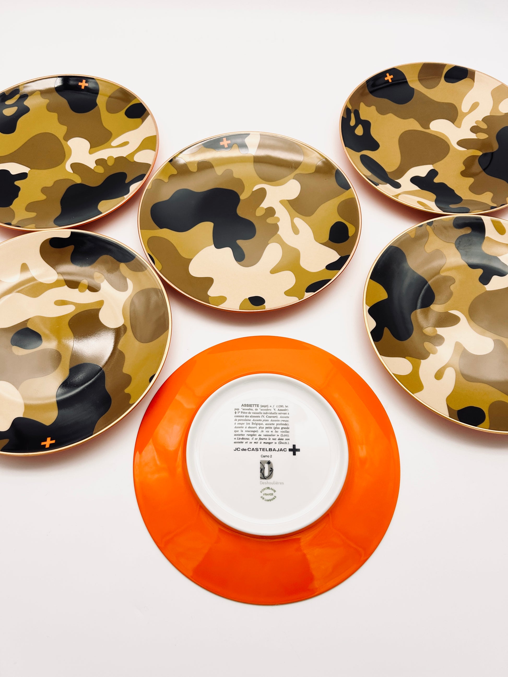 Ces 6 assiettes camouflages JC de Castelbajac pour Maison Deshoulières sont un excellent exemple de design audacieux et contemporain.