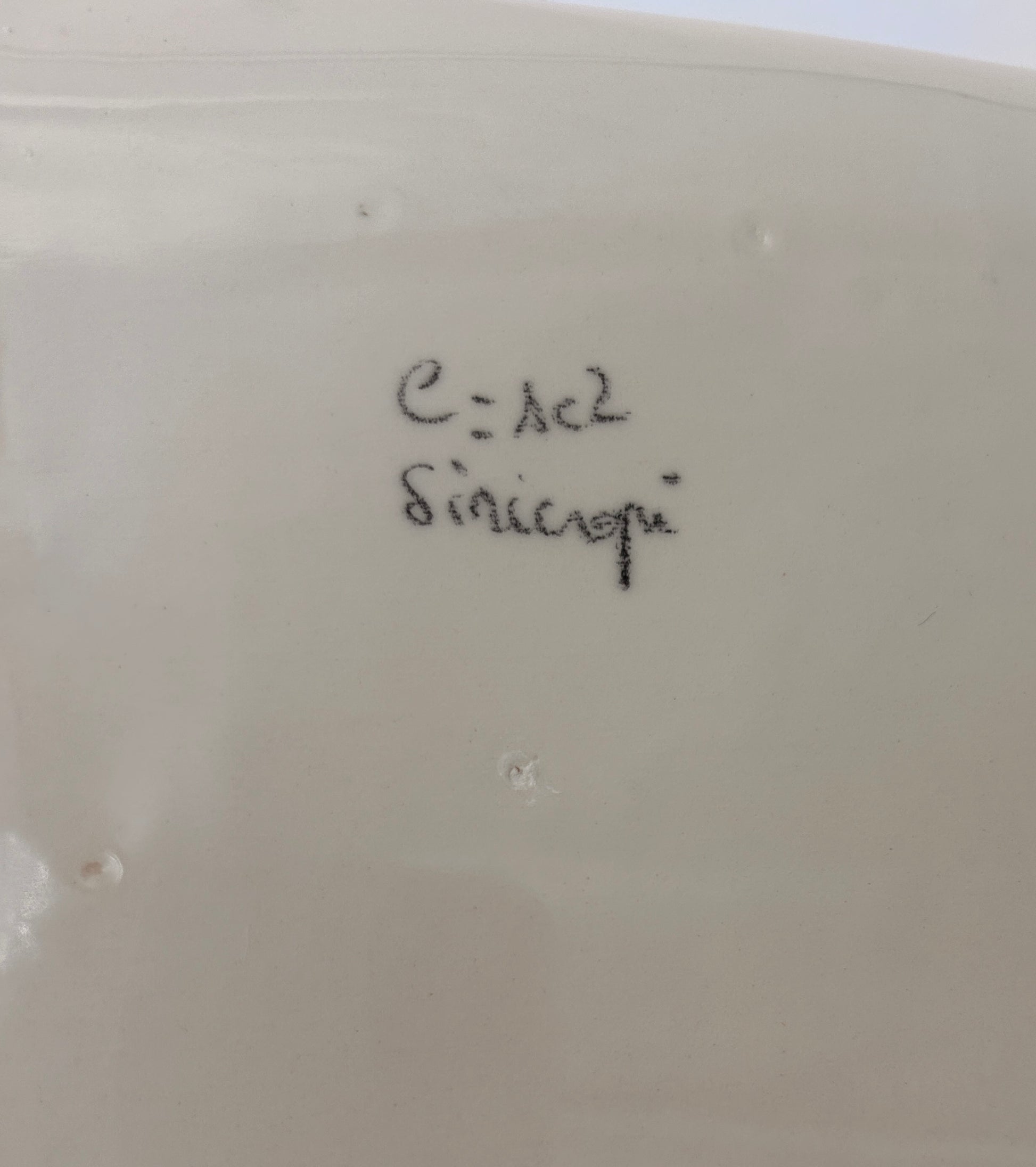 Cette pièce distinctive, aux formes organiques et aux motifs évoquant des créatures fantastiques, illustre leur approche artistique fusionnant gastronomie et céramique.