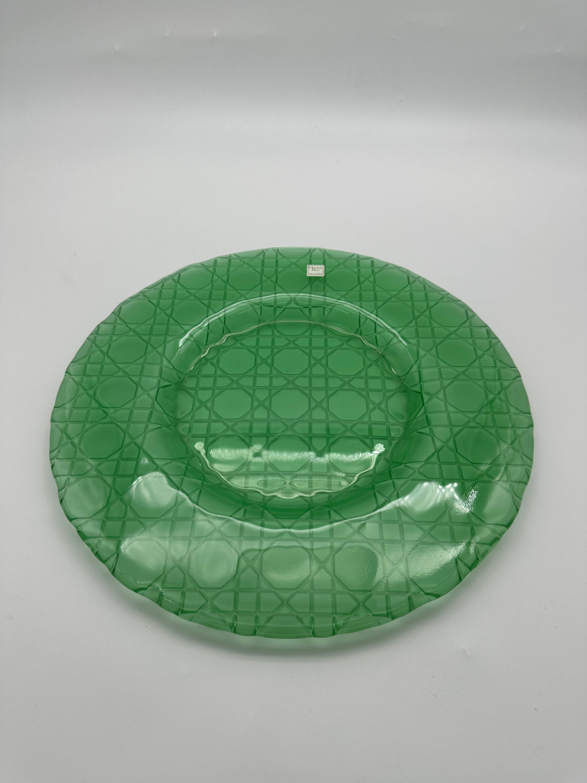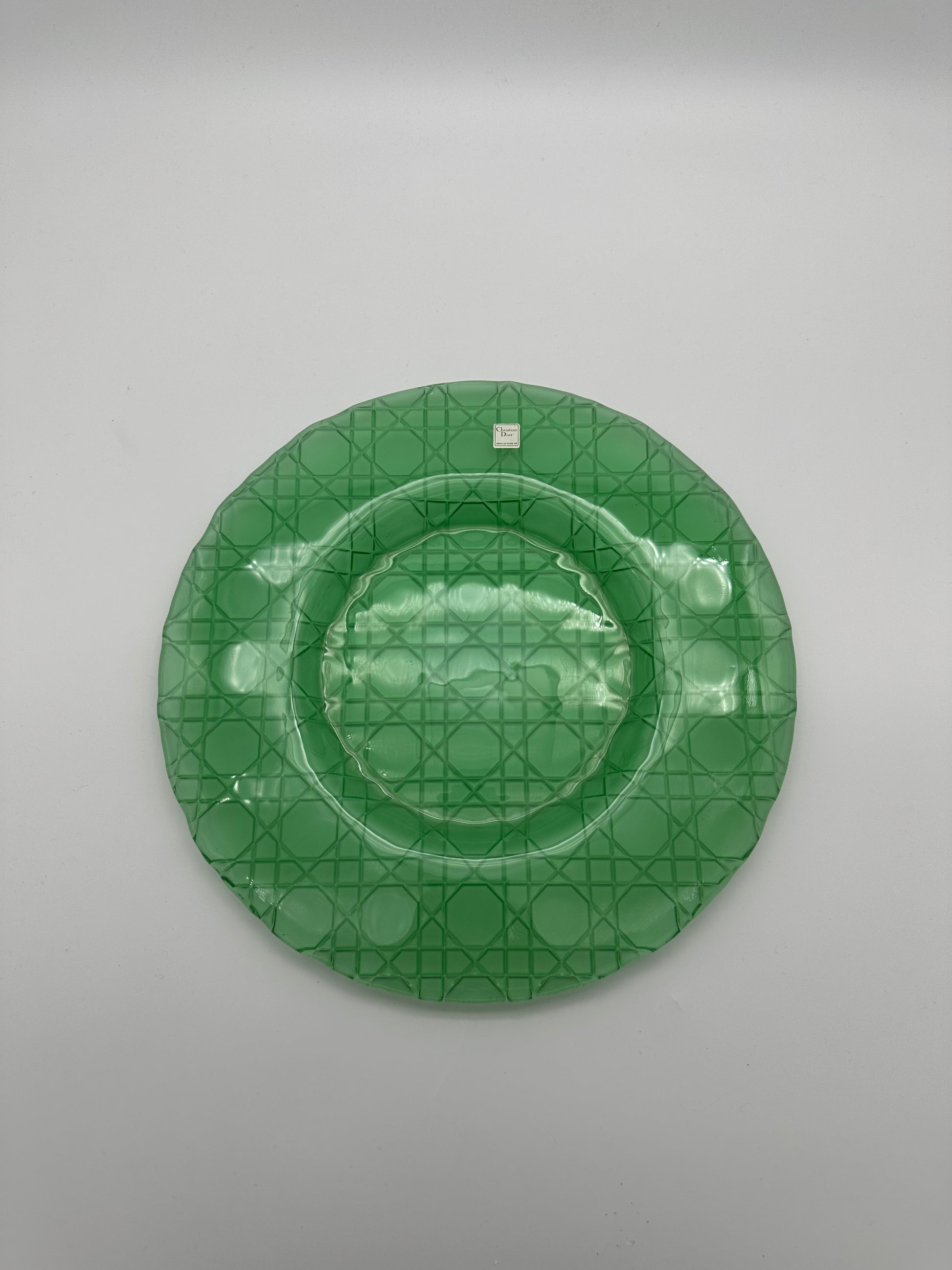 Assiette de présentation en cristal gravé motif cannage de chez Dior.
