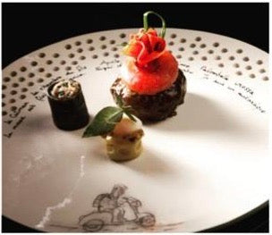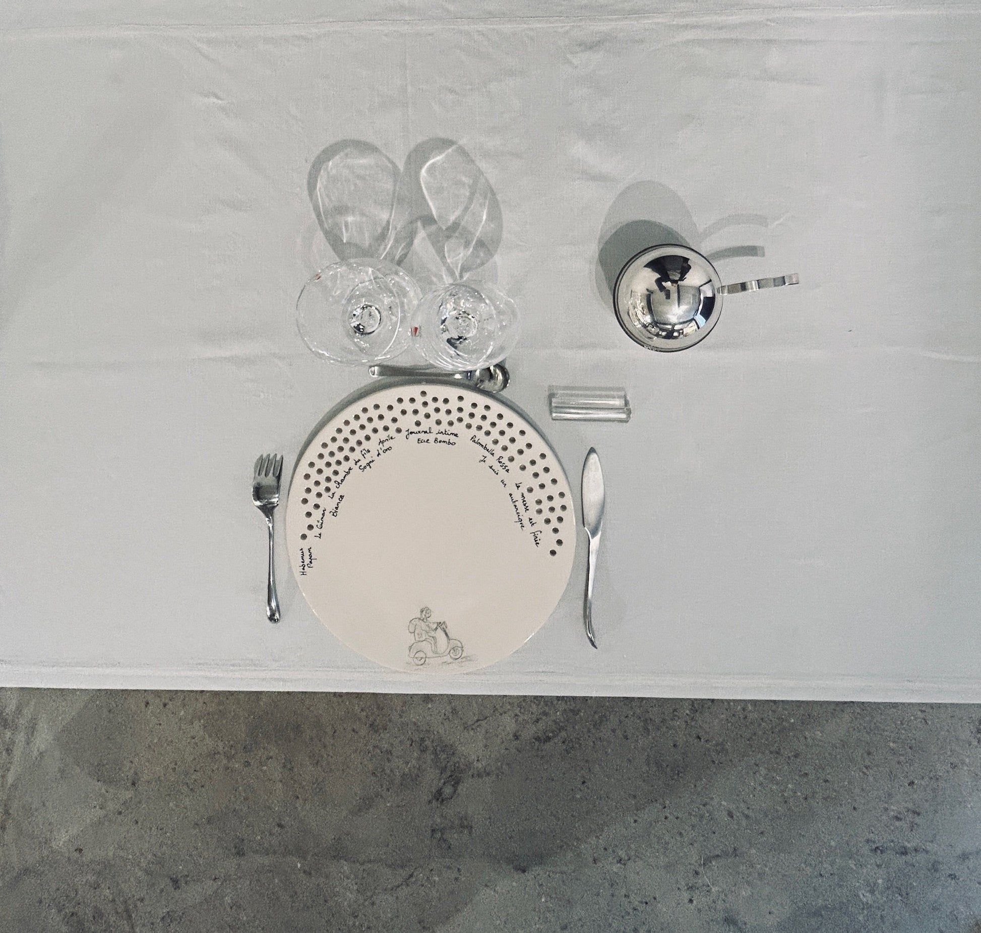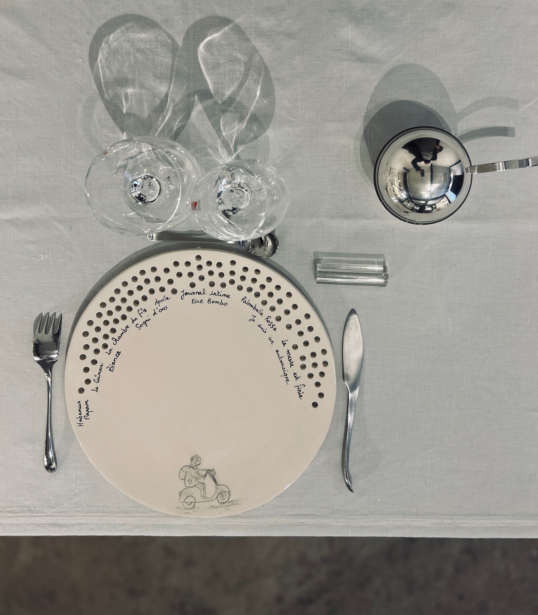 Cette assiette "scooter" créée en 2012 pour le diner du jury du festival de Cannes présidé par Nanni Moretti est idéale pour un dîner élégant.