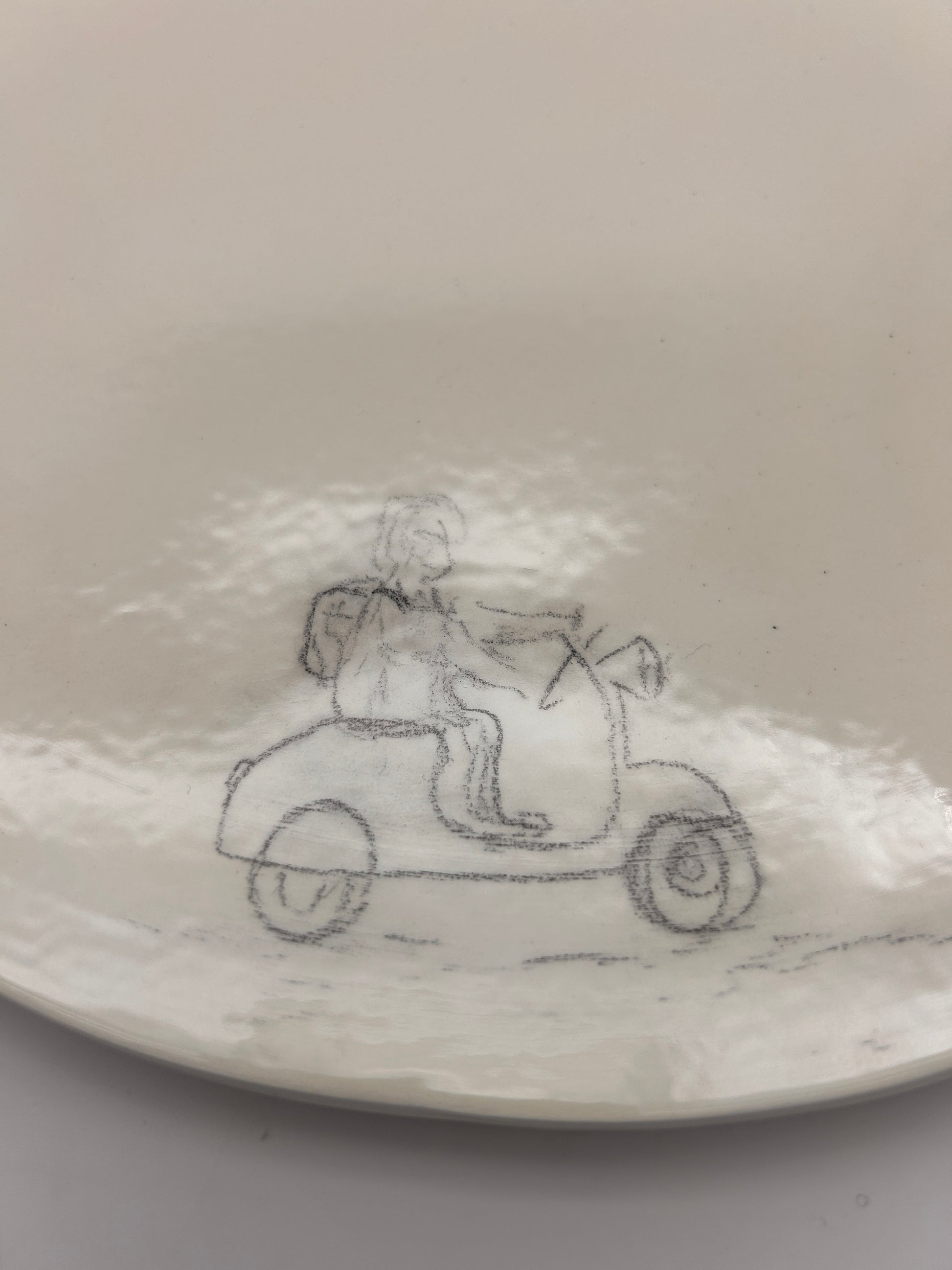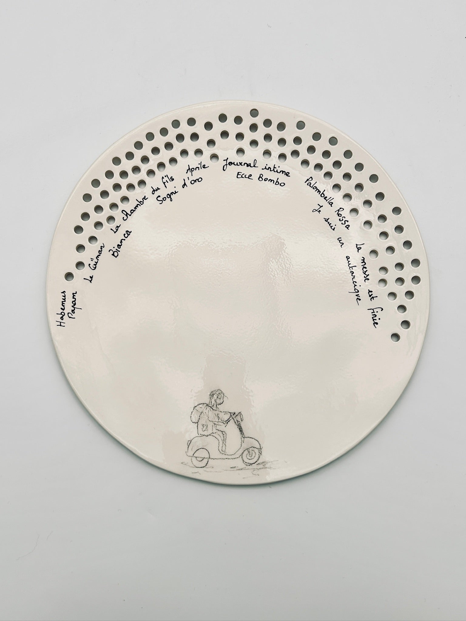 Assiette en céramique "scooter", diner "Nanni Moretti", Festival de Cannes, Sinicropi, 2012
