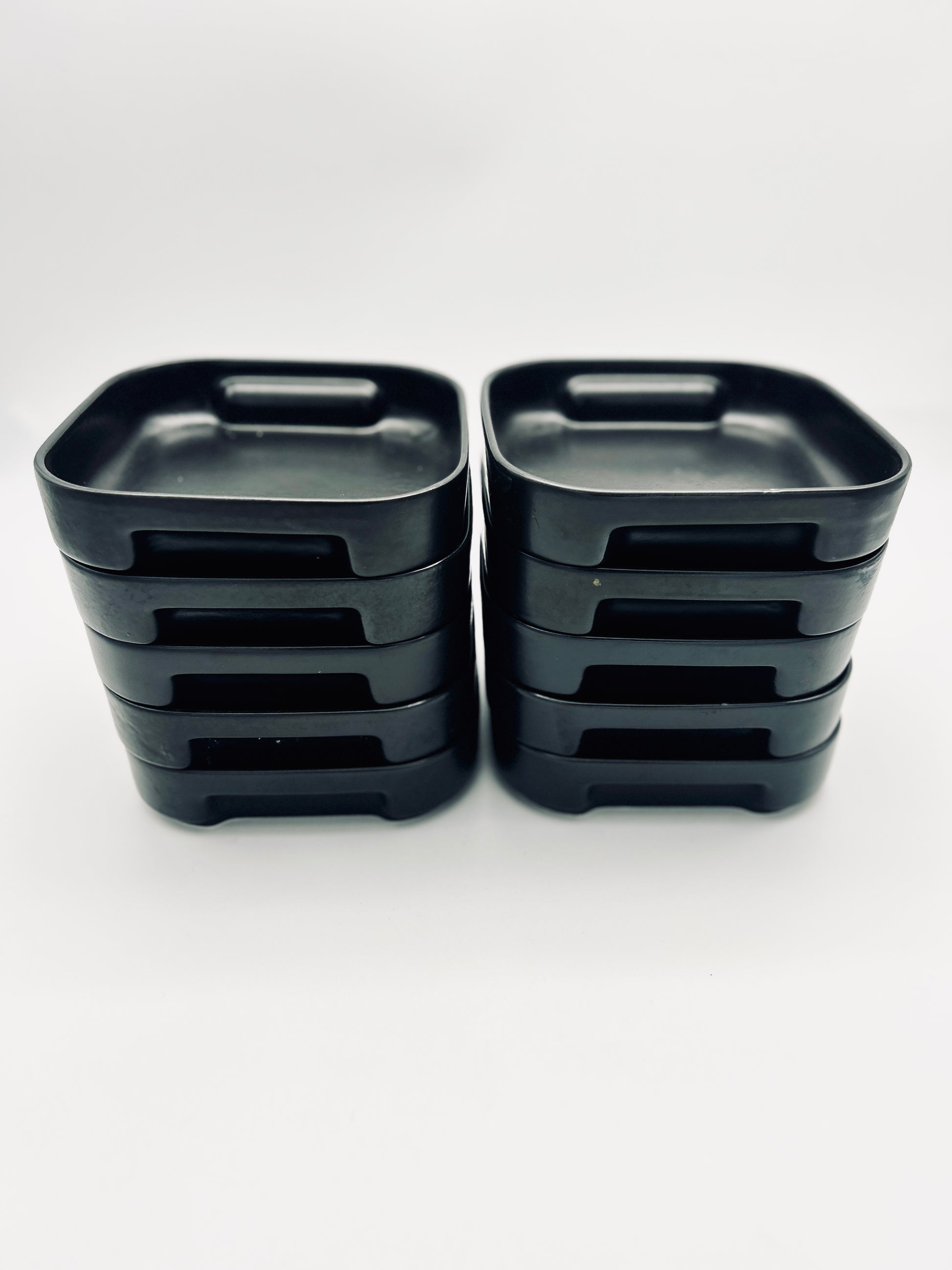 Les 10 assiettes creuses noires "square" en céramique designées par Makio Hasuike pour la collection Arnolfo di Cambio et produites par Ravelli à Laveno, sont un choix chic et contemporain pour toute table.