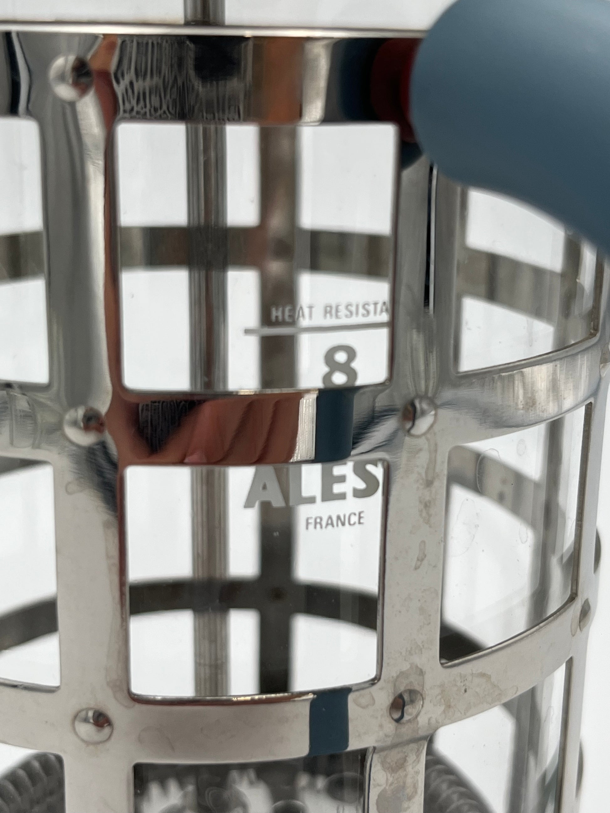 Fabriquée avec une combinaison de matériaux en azur et acier inoxydable 18/10, elle est en très bon état.