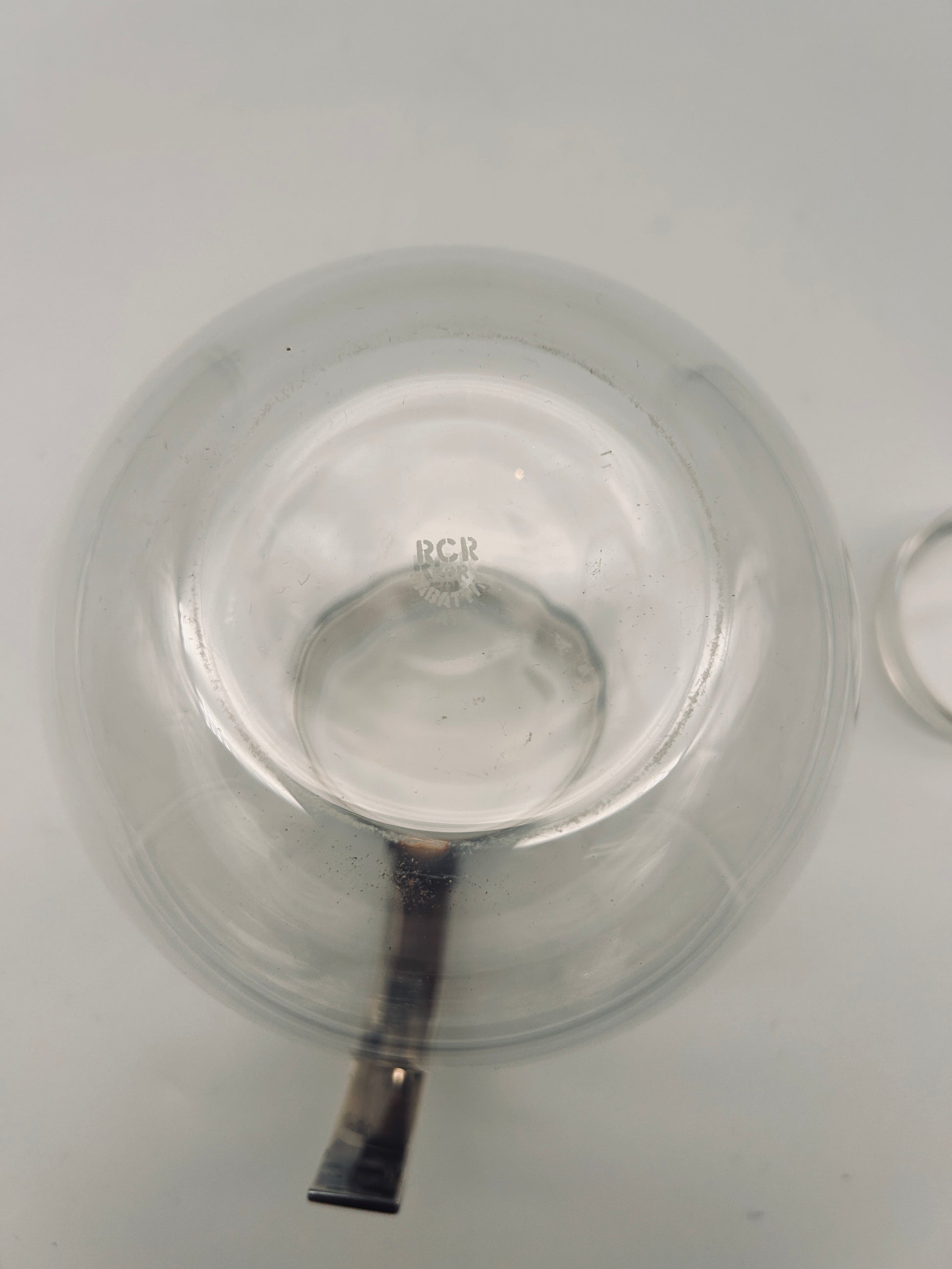 La carafe en verre et métal argenté et un bouchon en plexiglas, signée Lino Sabattini en collaboration avec RCR, combine élégance et fonctionnalité.