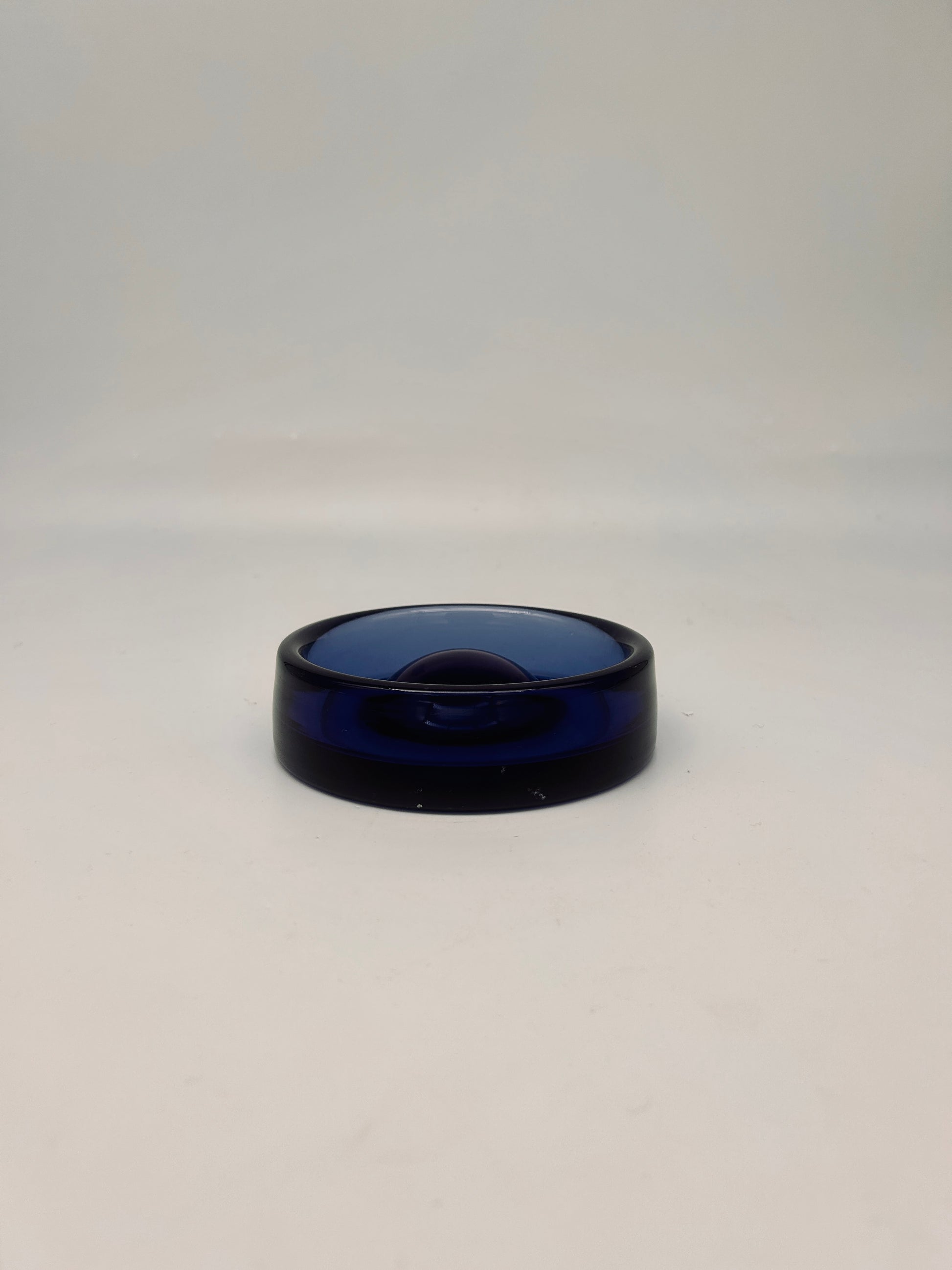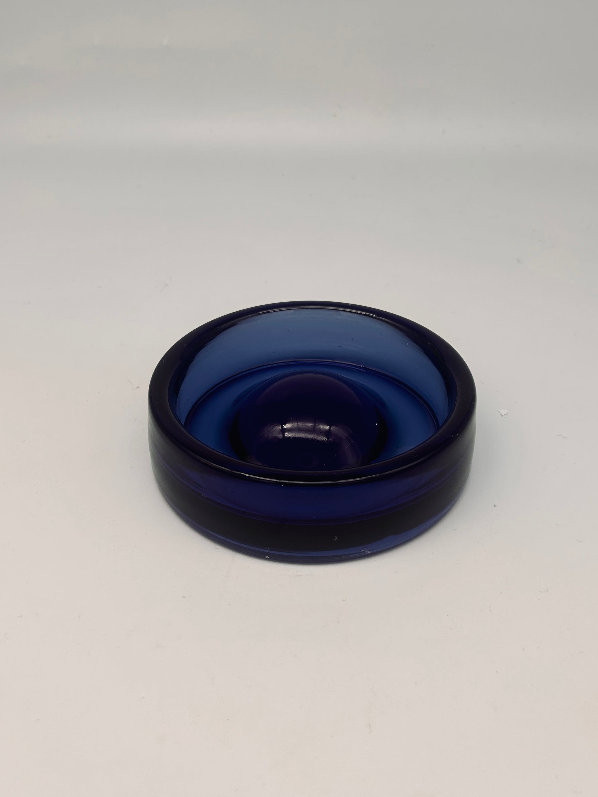 Cendrier danois en verre bleu, Per Lutken, Holmegaard, 50s