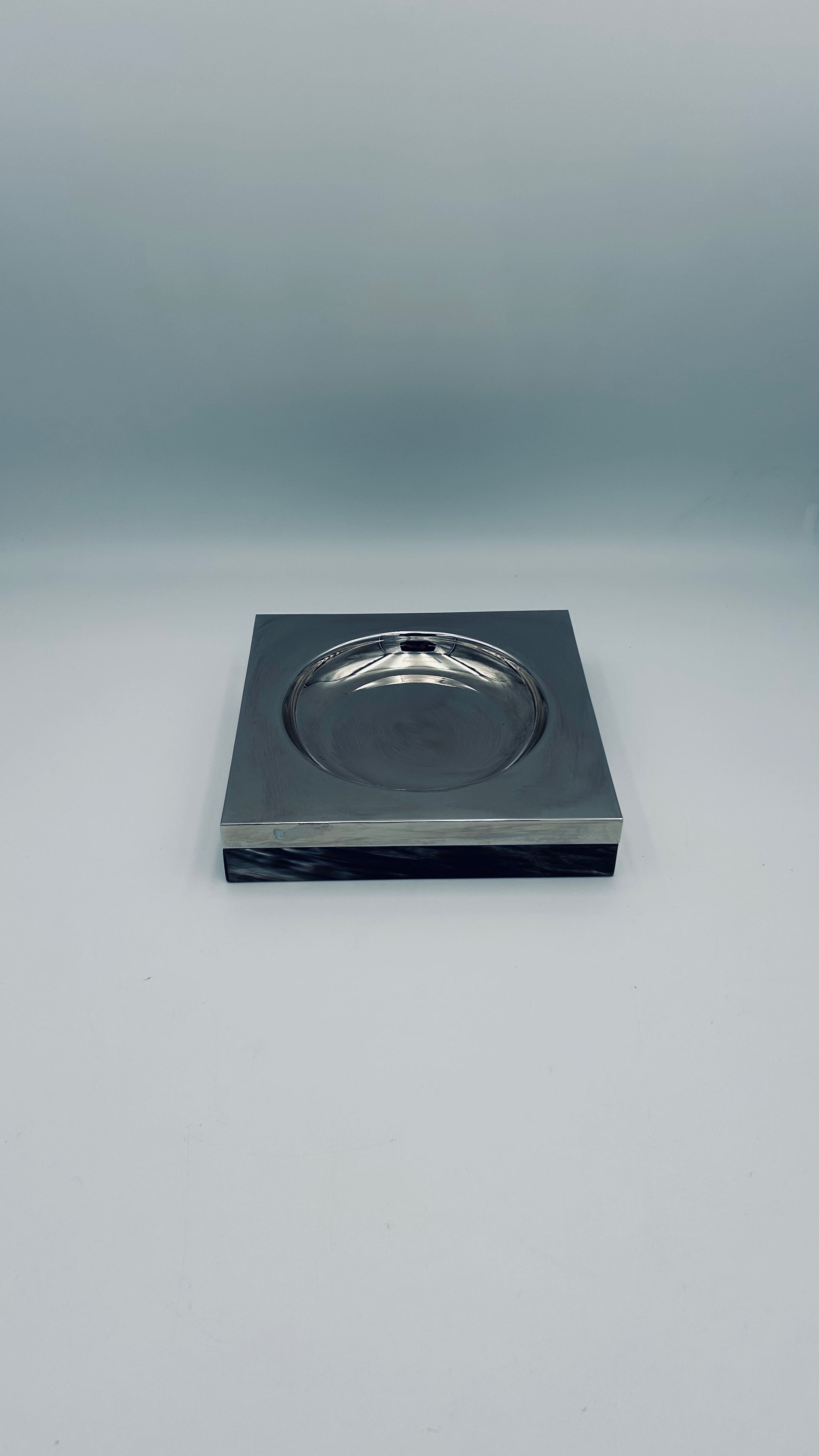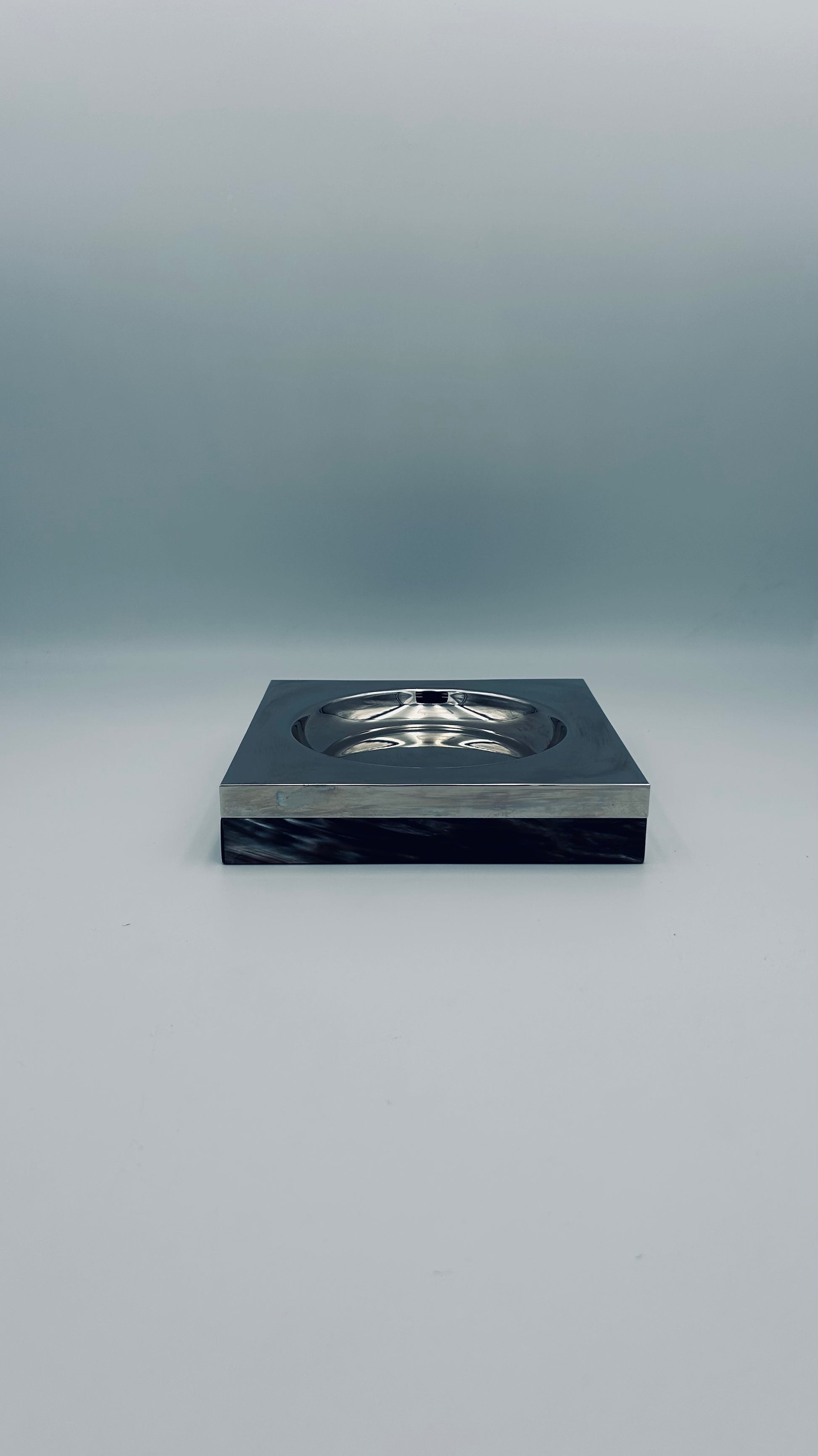 Alliant l’élégance intemporelle du métal à la chaleur authentique de la corne, ce cendrier Ronson incarne le raffinement des années 70.