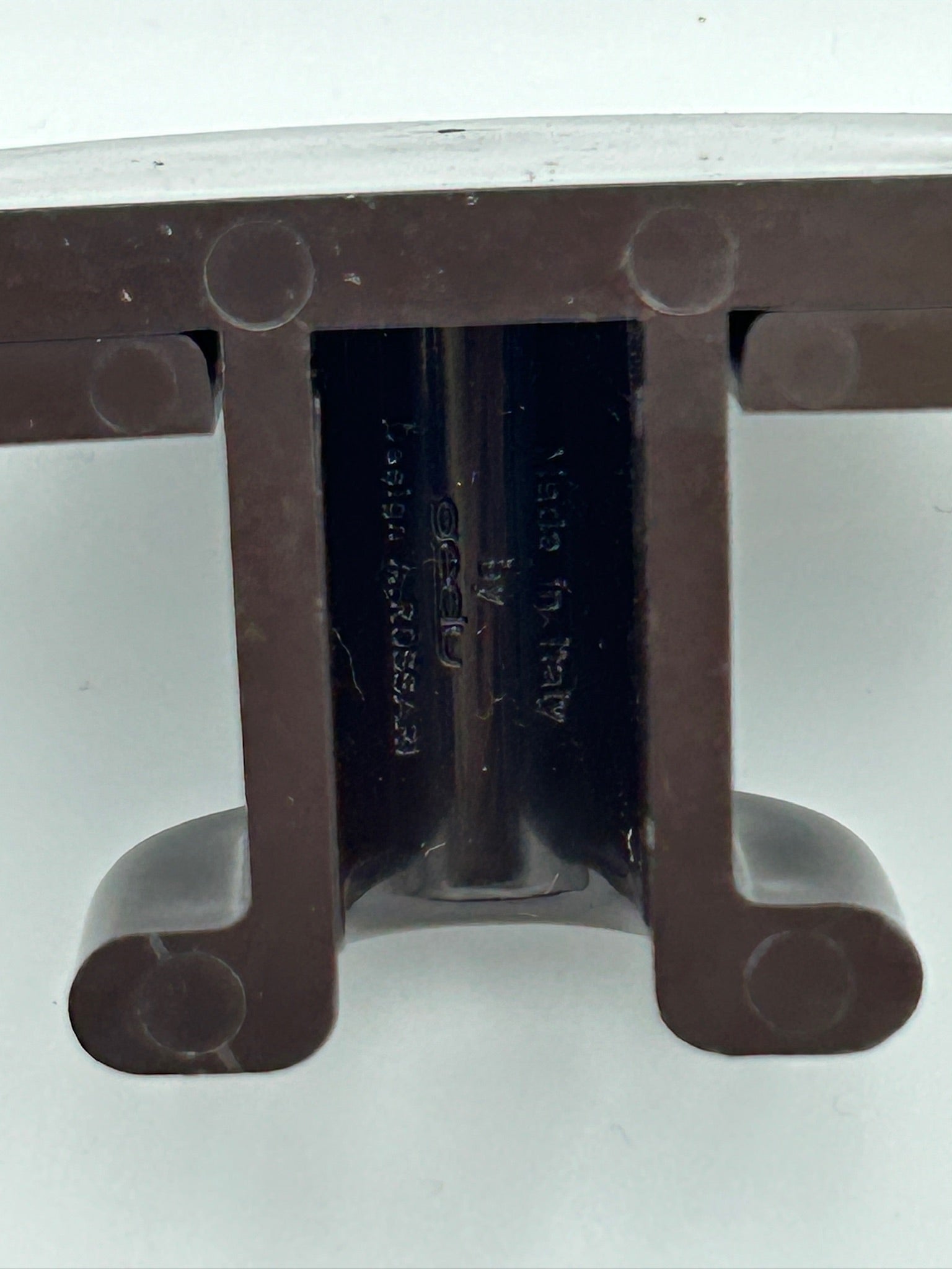 Les patères demi-cercle en ABS marron, conçues par Ambrogio Rossari pour Gedy dans les années 1970, sont emblématiques du design italien de cette époque.