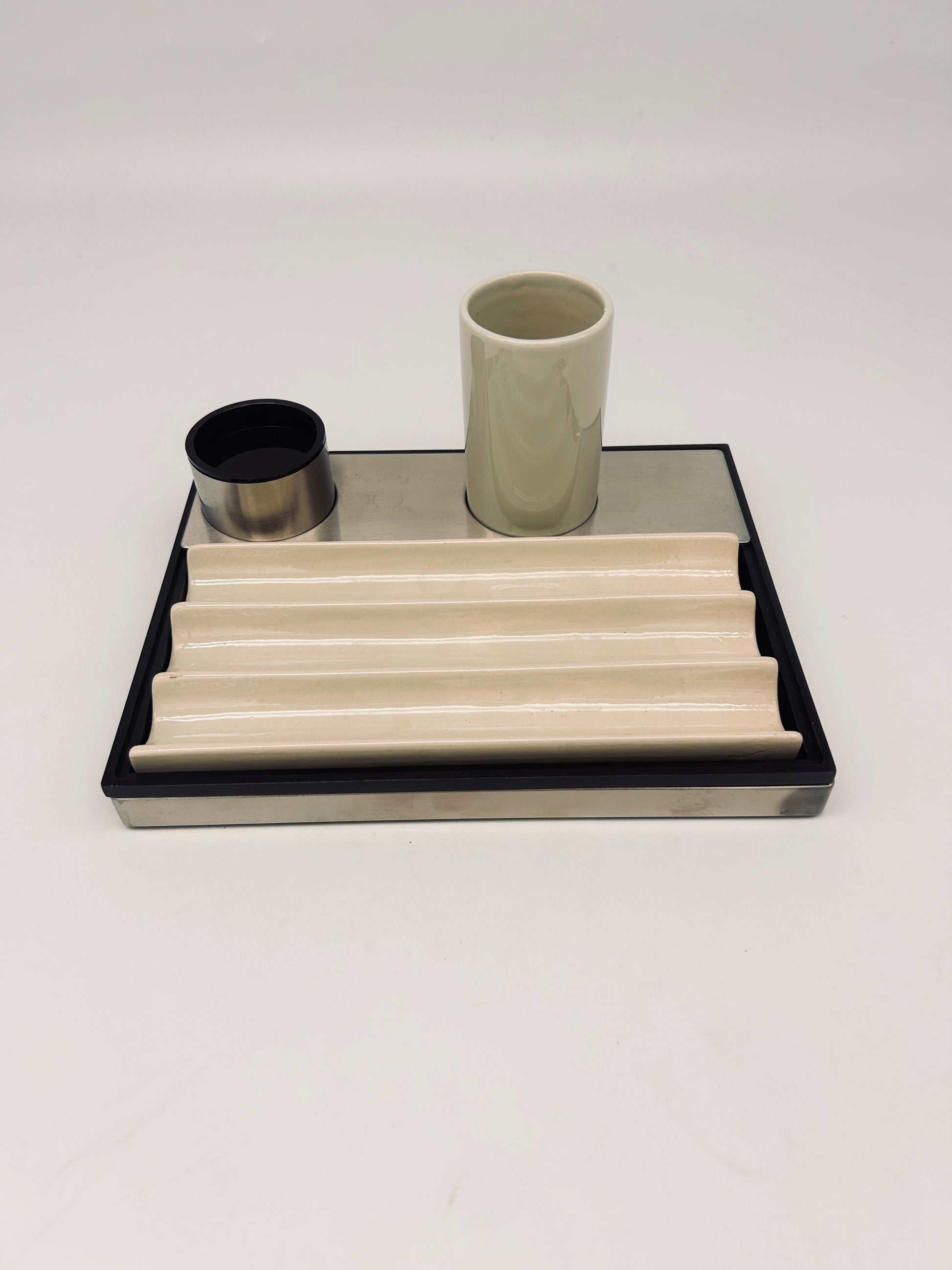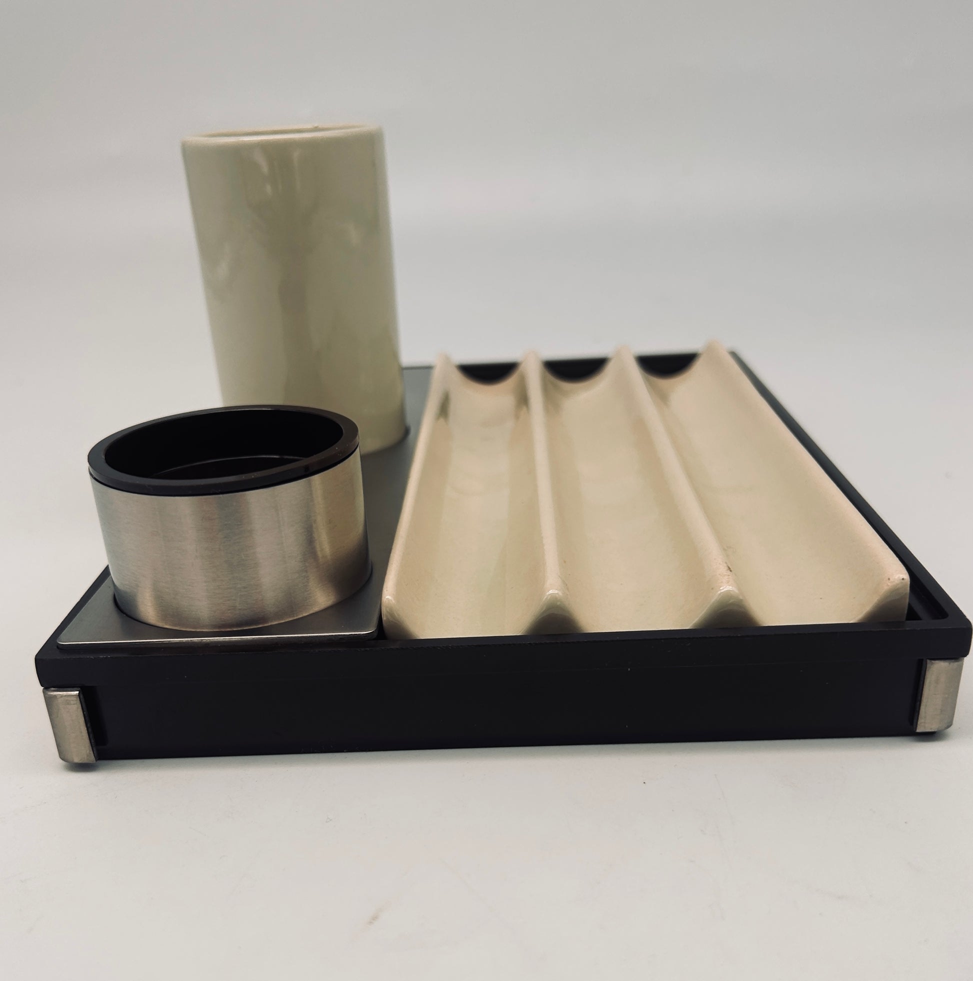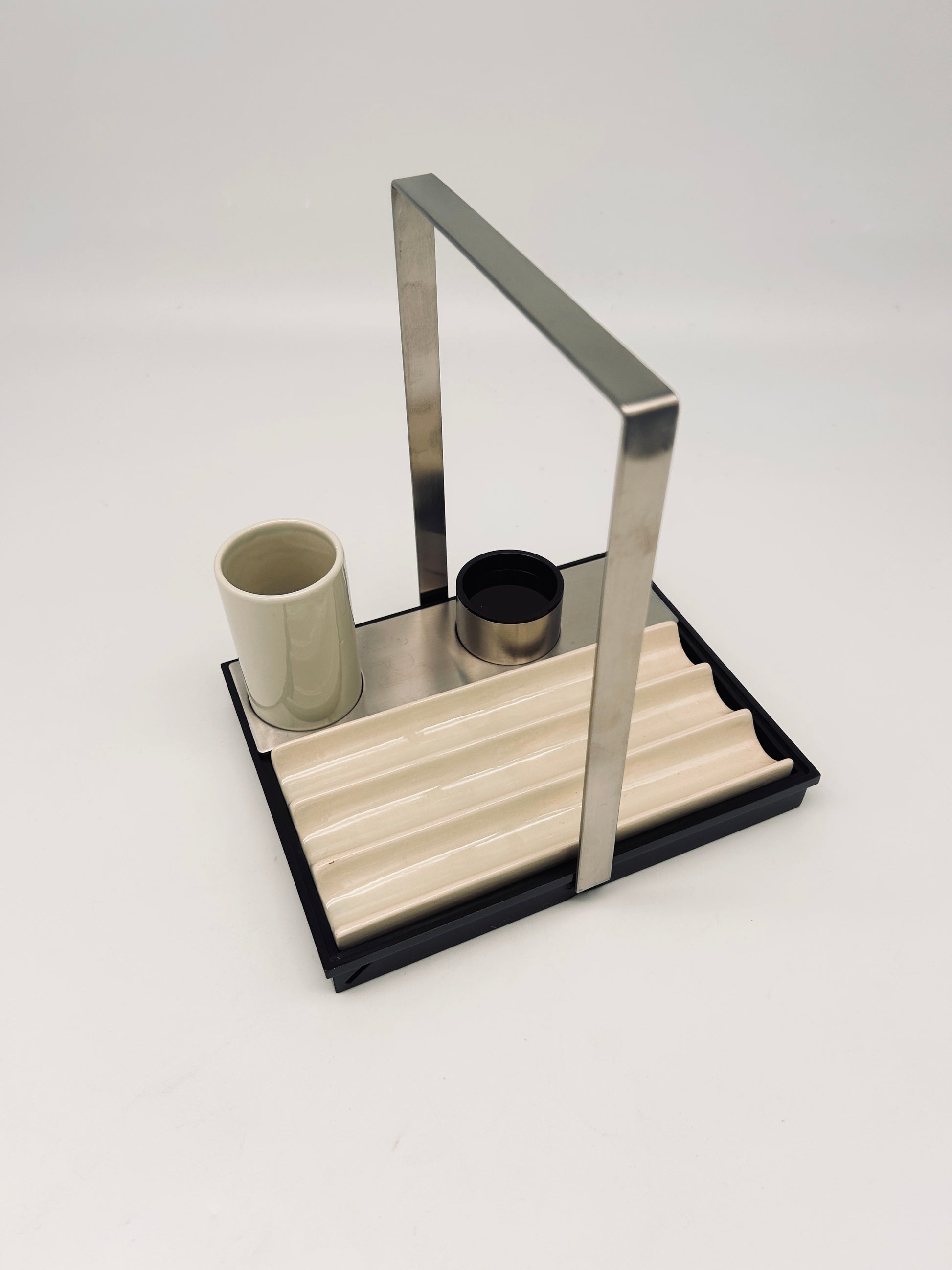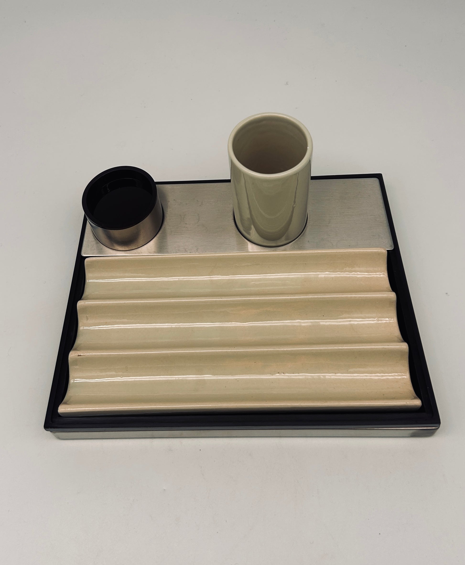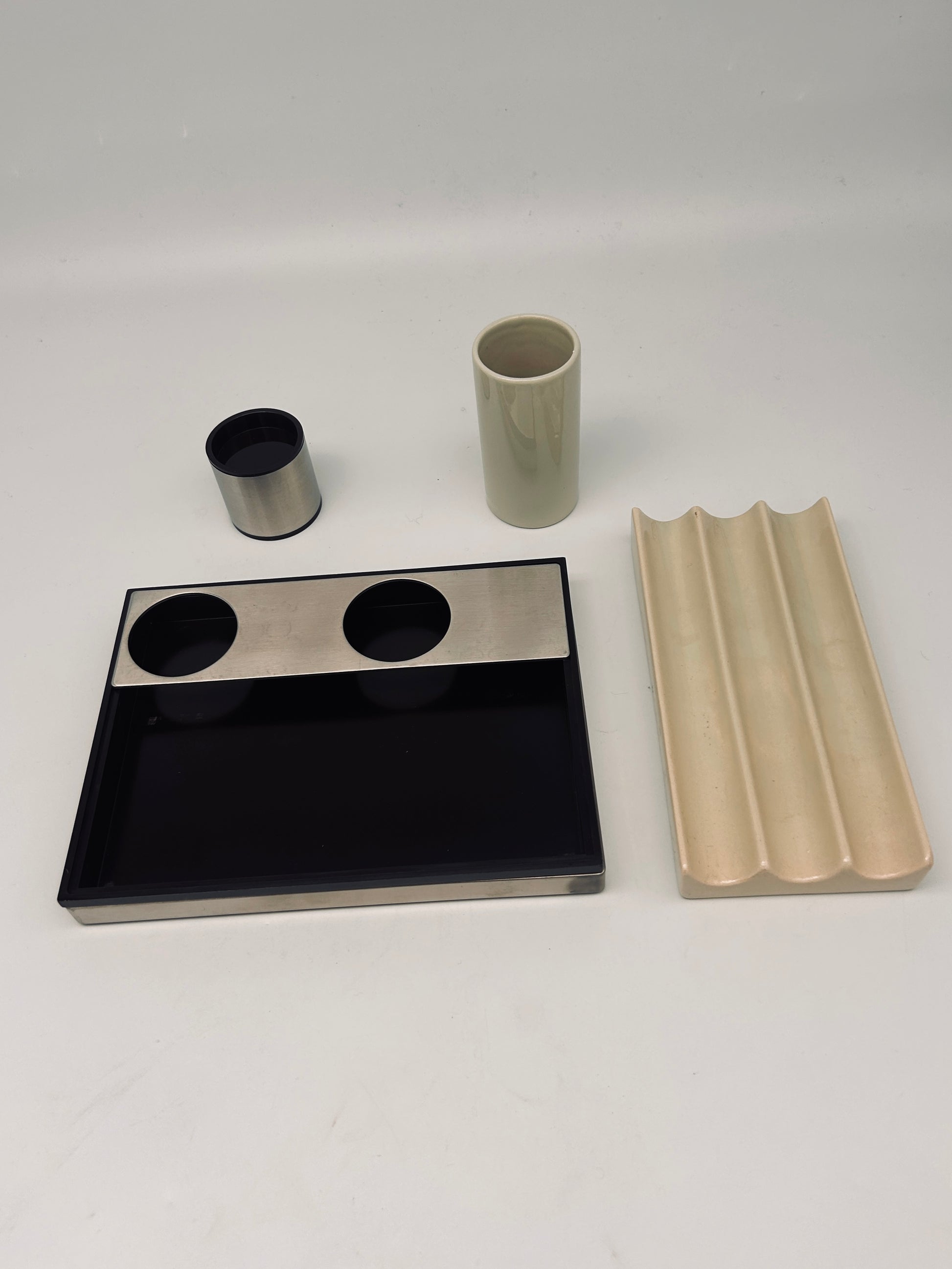 Set de bureau, porte stylo, Roberto Sambonet, ligne Scacchiera, 70s