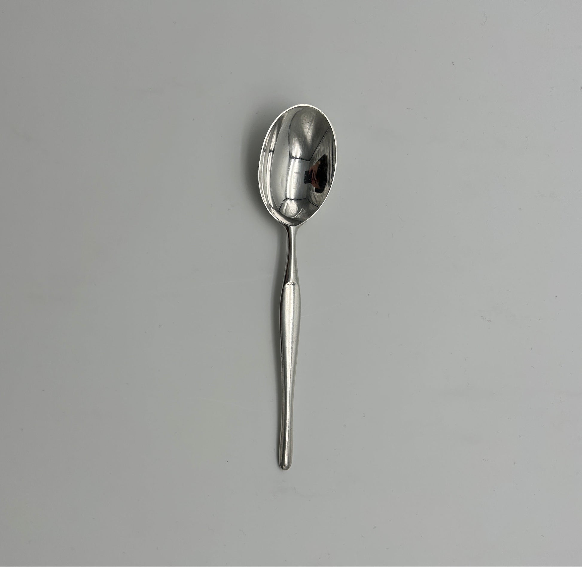 Les cuillères en métal argenté de la ligne Duo, conçues par Tapio Wirkkala pour Christofle, illustrent parfaitement l'élégance et la simplicité de cette collection.