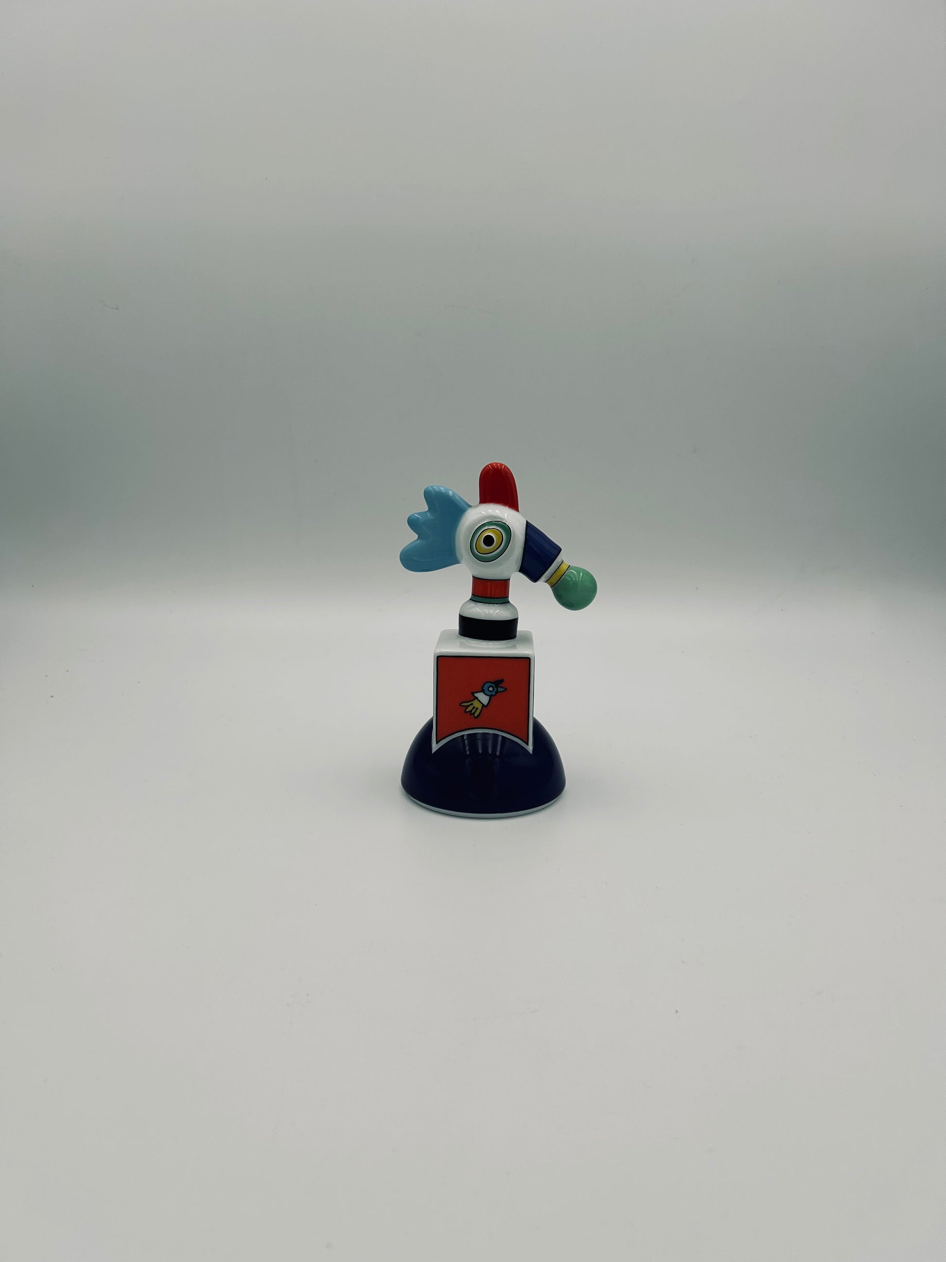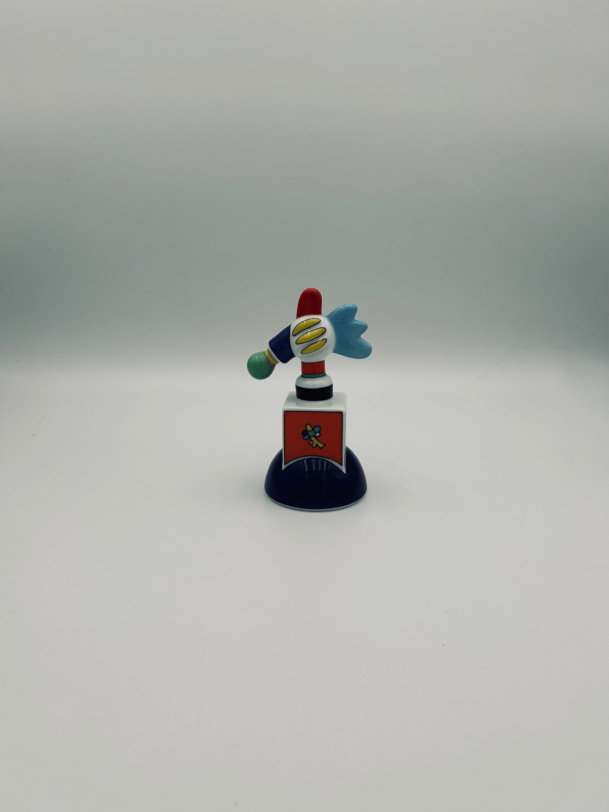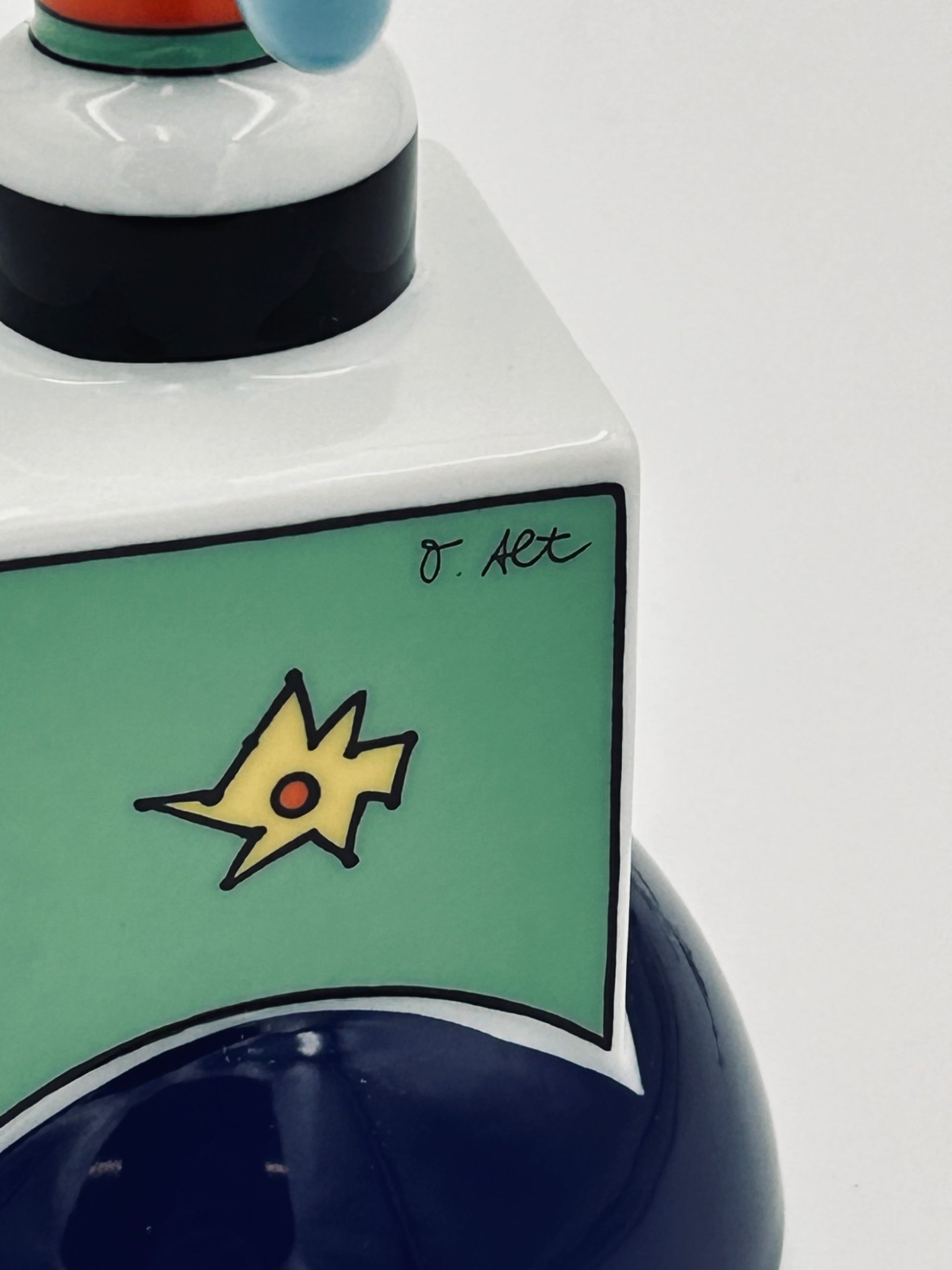 Cette sculpture incarne l'esprit ludique et coloré de l'artiste, associée au mouvement Memphis.