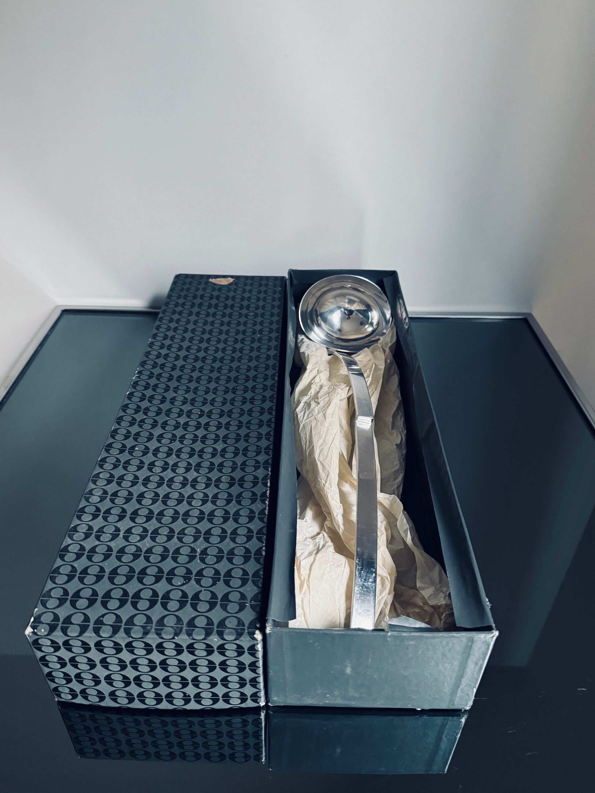 Avec ses lignes épurées et son allure majestueuse, cette louche géante est une pièce à la fois pratique et décorative. Sa taille inhabituelle en fait un objet spectaculaire, parfait pour servir lors d’événements spéciaux ou simplement pour orner une cuisine ou une salle à manger.