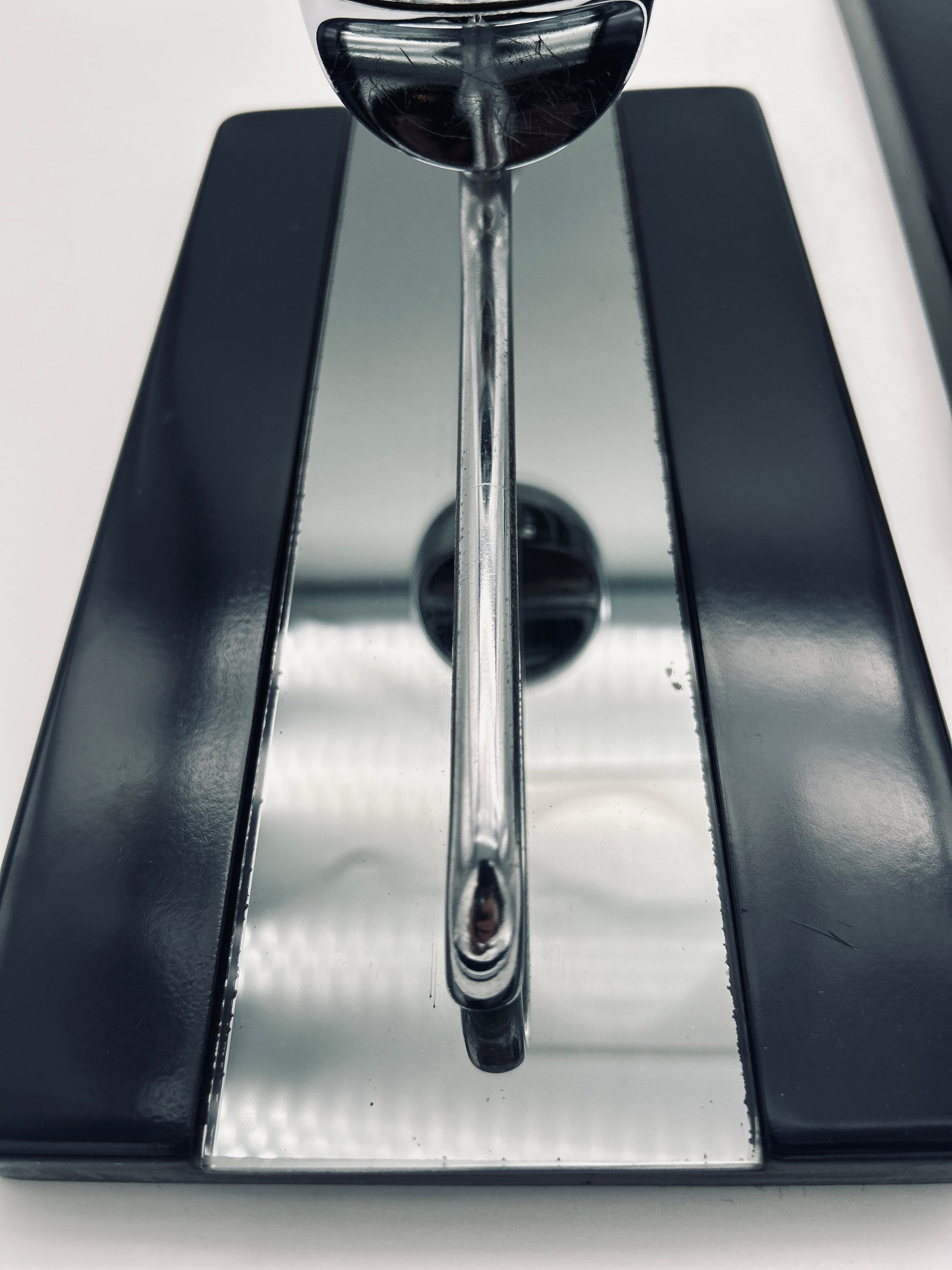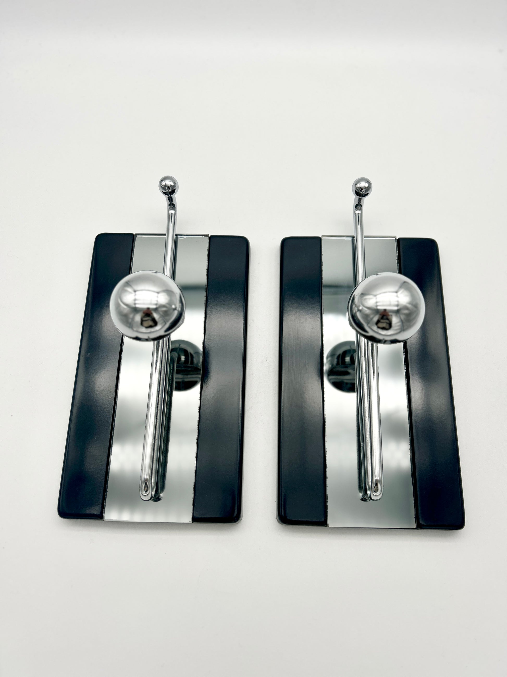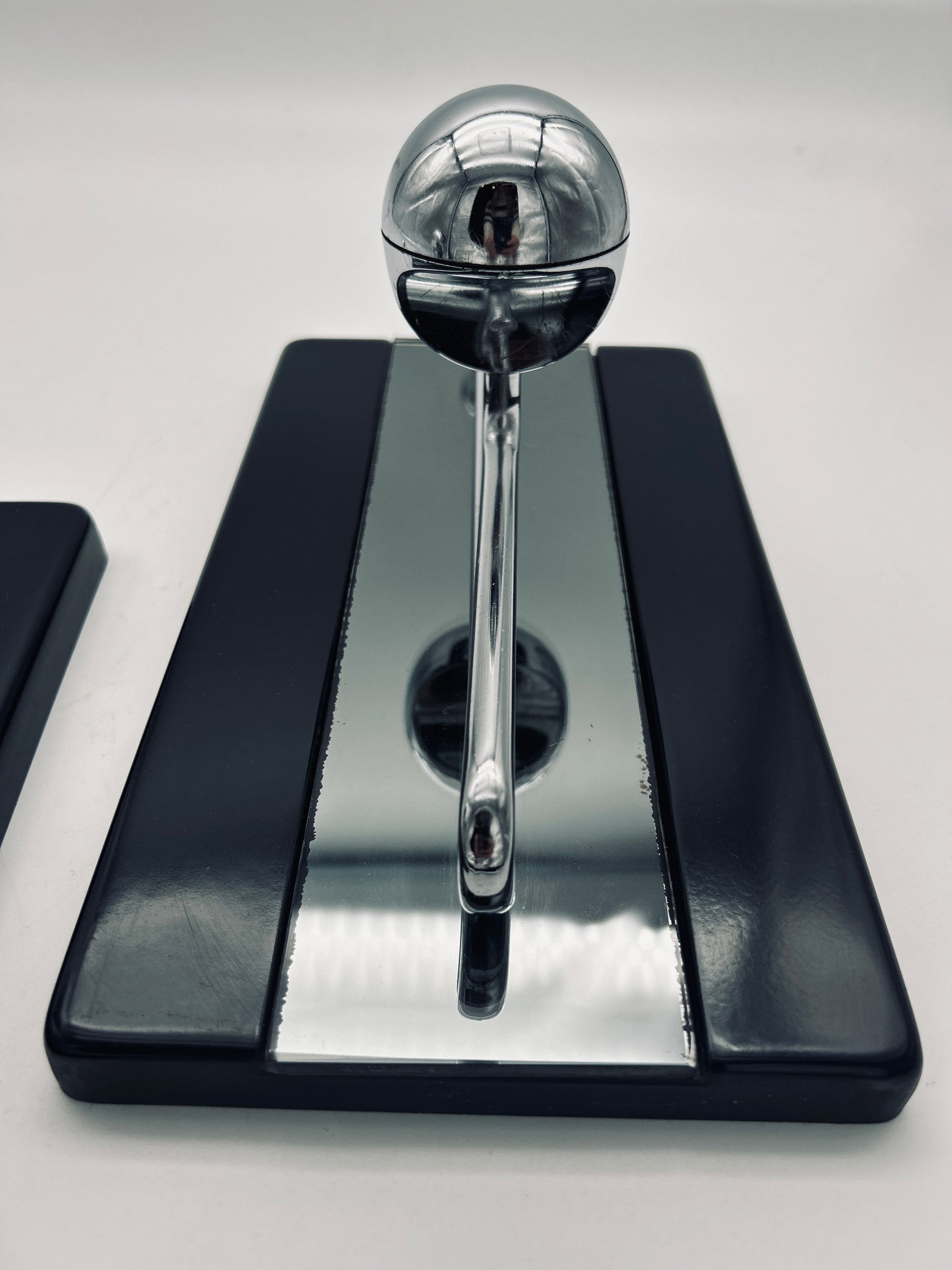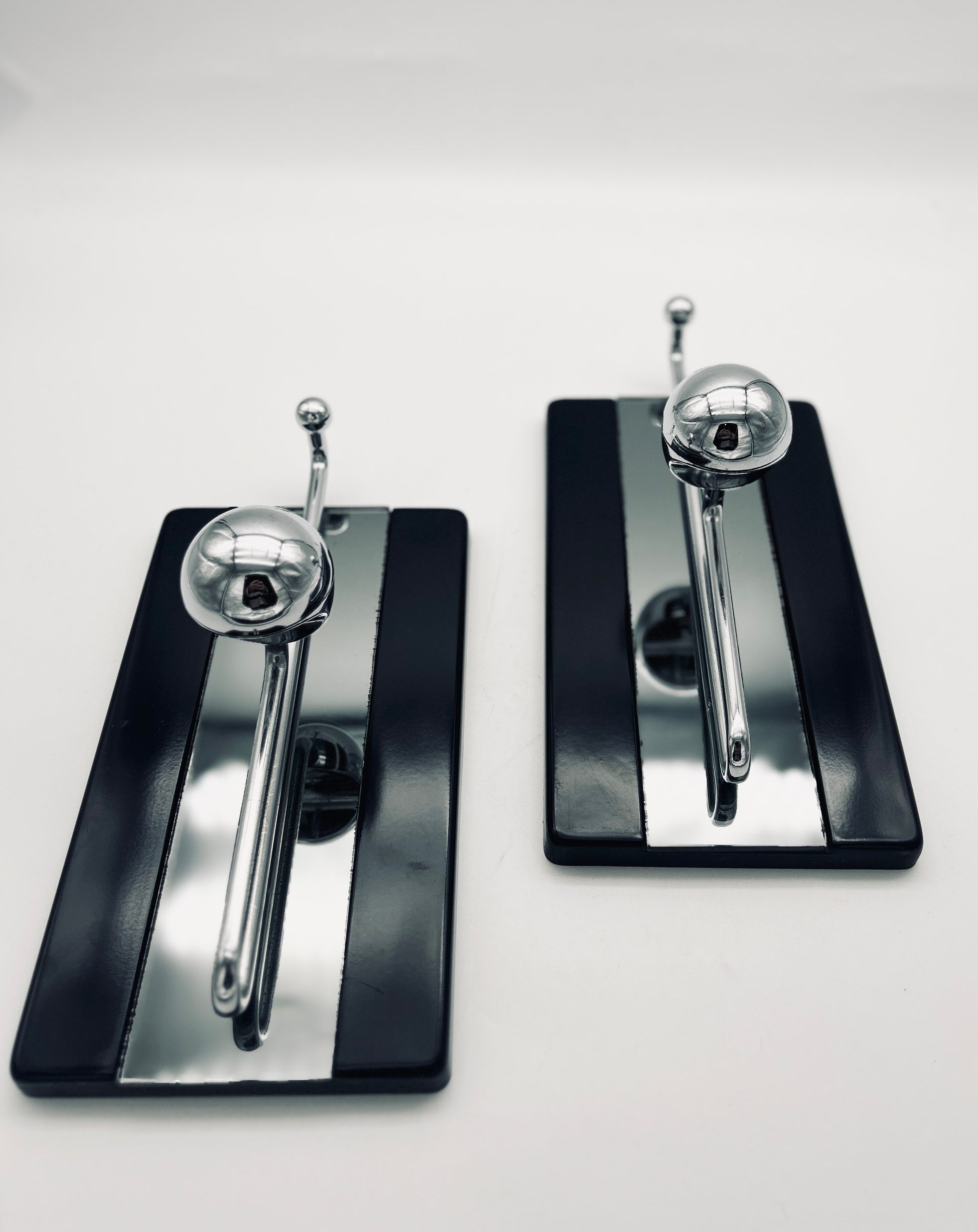 Leur finition chromée et le contraste avec le fond noir ajoutent une note de sophistication.