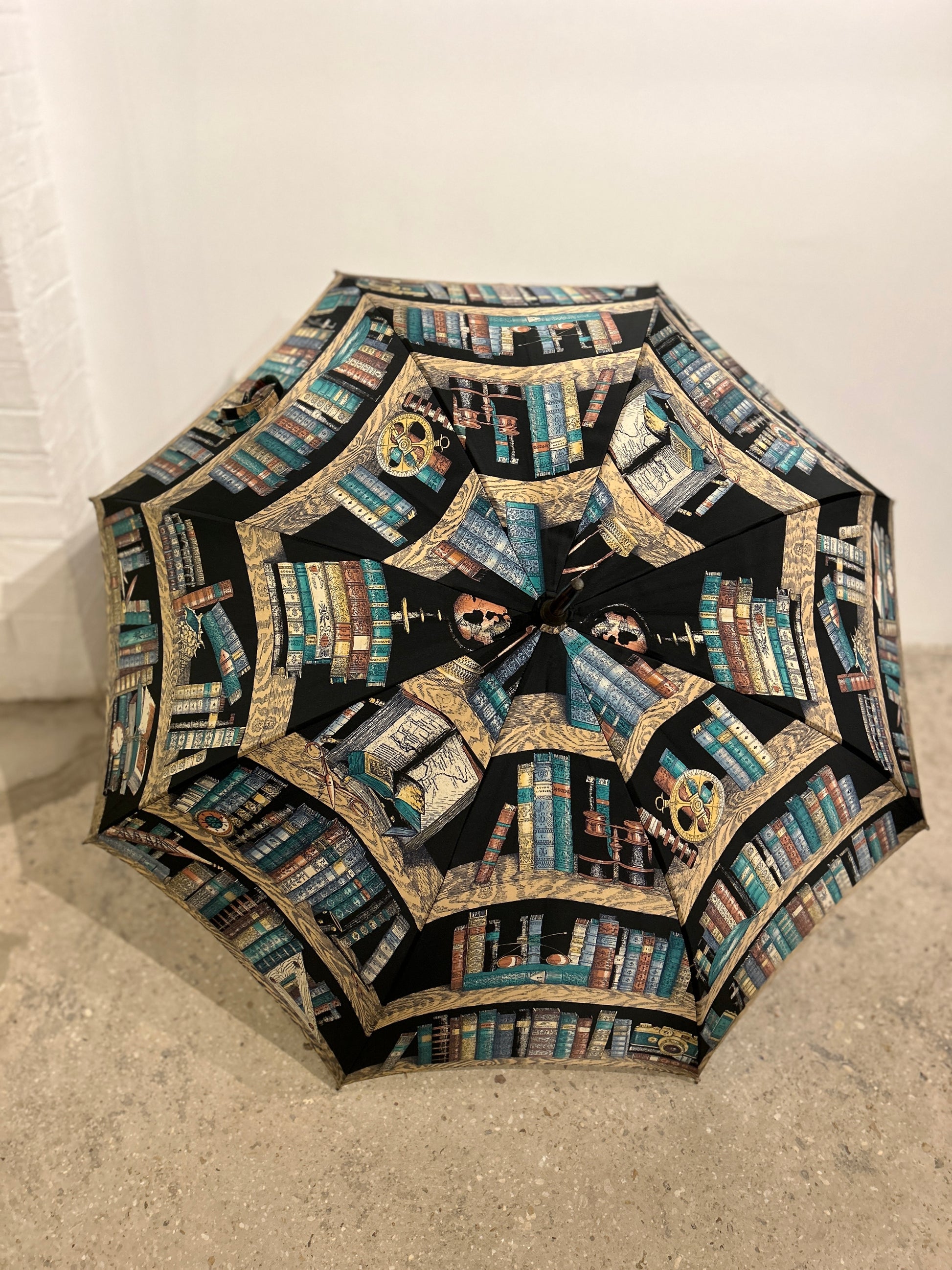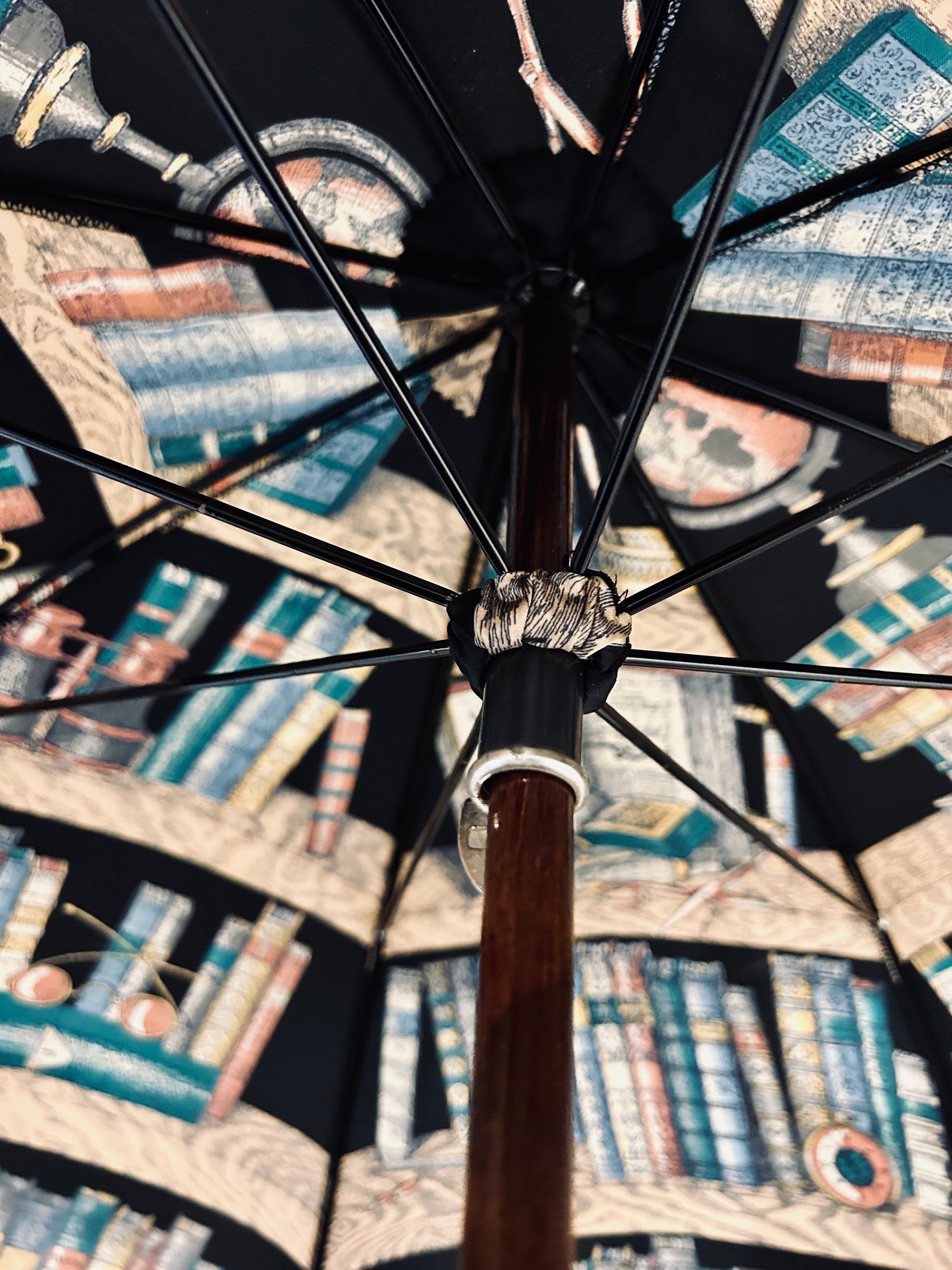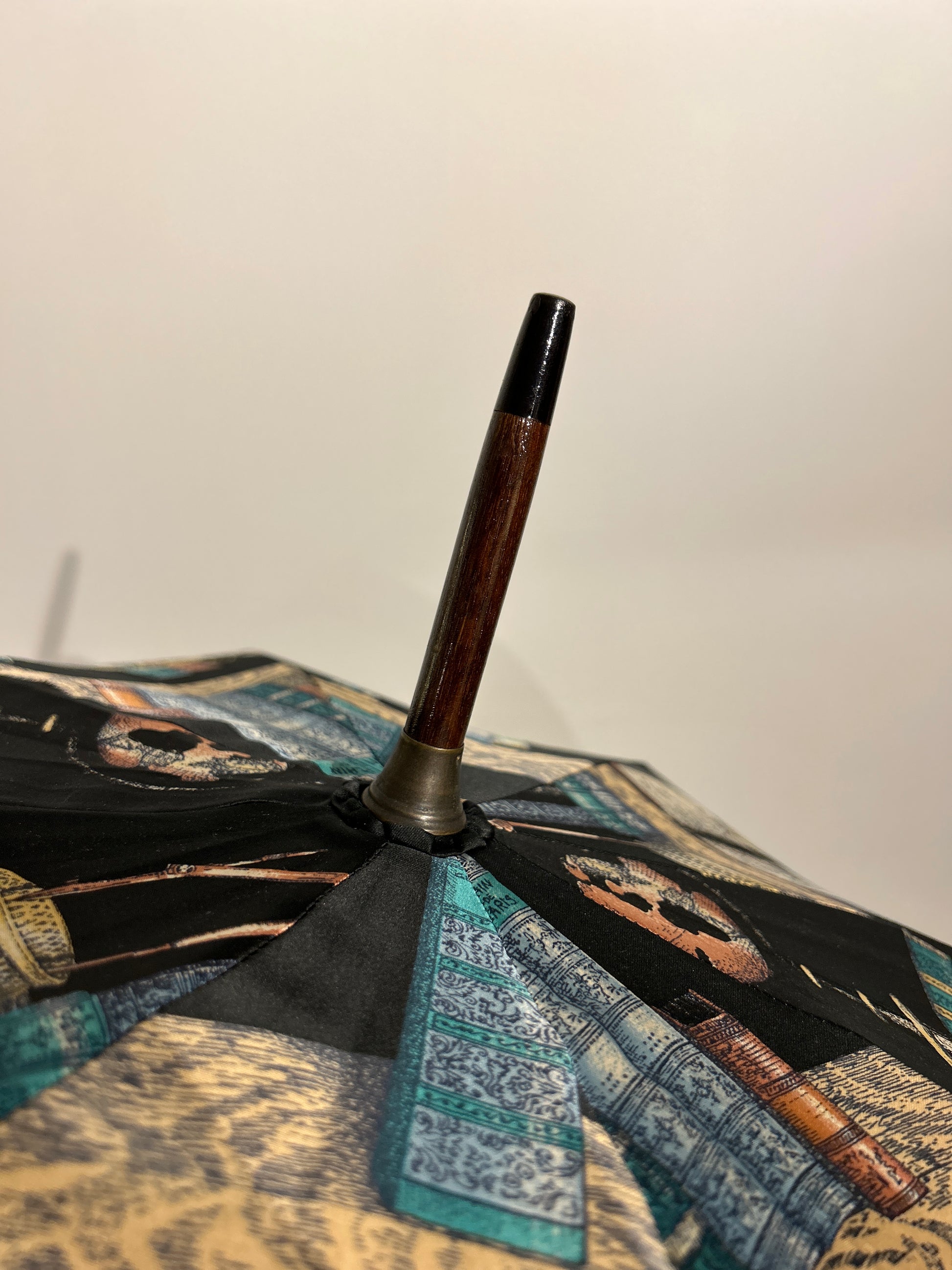 Parapluie Piero Fornasetti, fond noir "bibliothèque", 80s