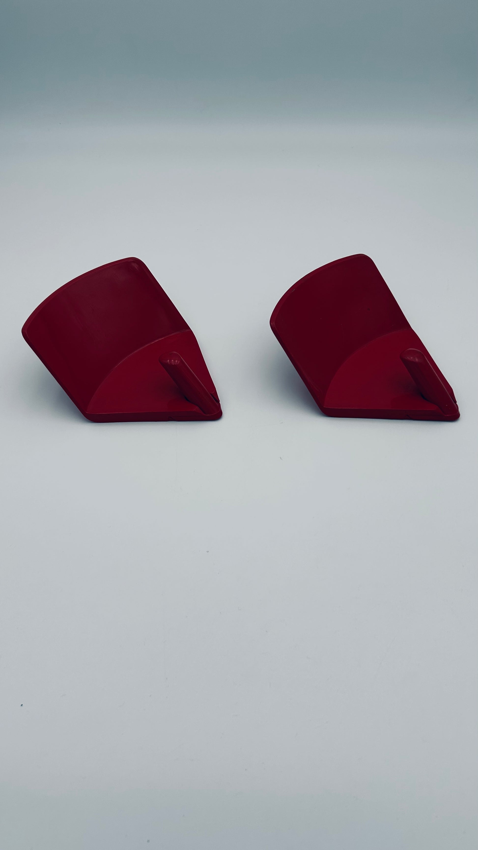 Icônes du design plastique italien, ces patères rouges présentent la silhouette triangulaire et l’esthétique futuriste qui ont fait la renommée de Gedy durant l’ère Space Age.
