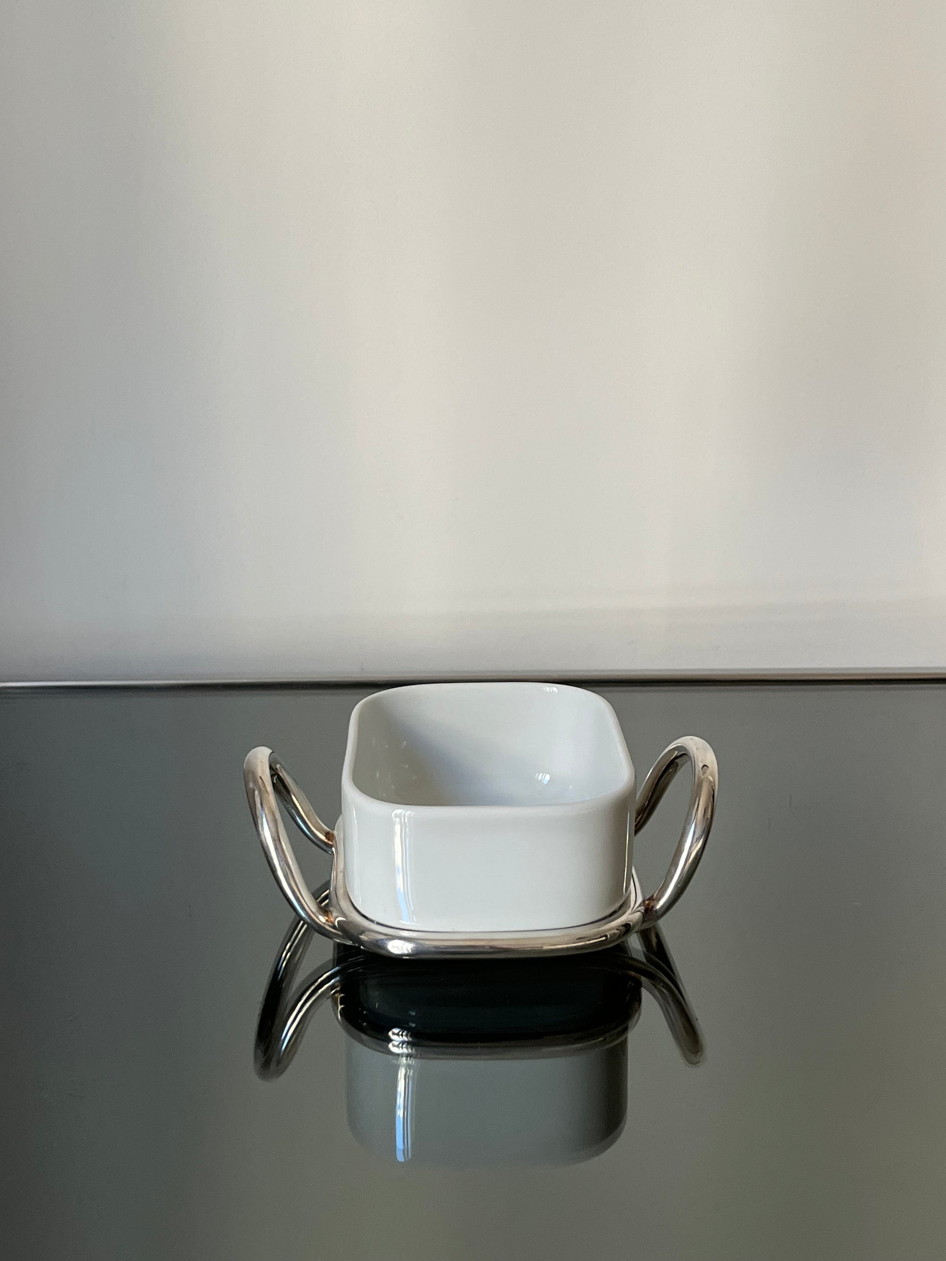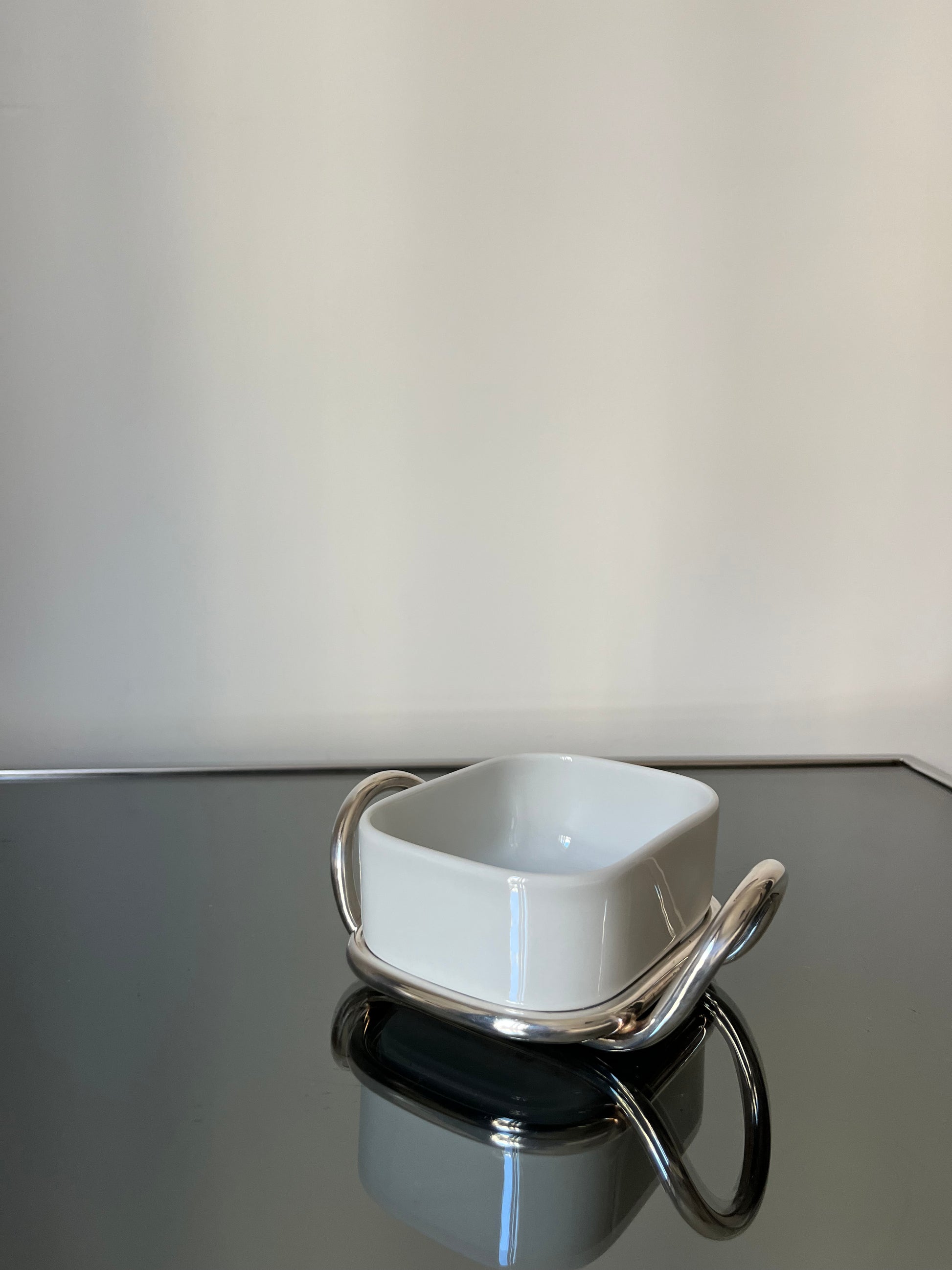 Élégant témoin du design postmoderne italien, ce petit plat de service signé Lino Sabattini allie sobriété et raffinement.