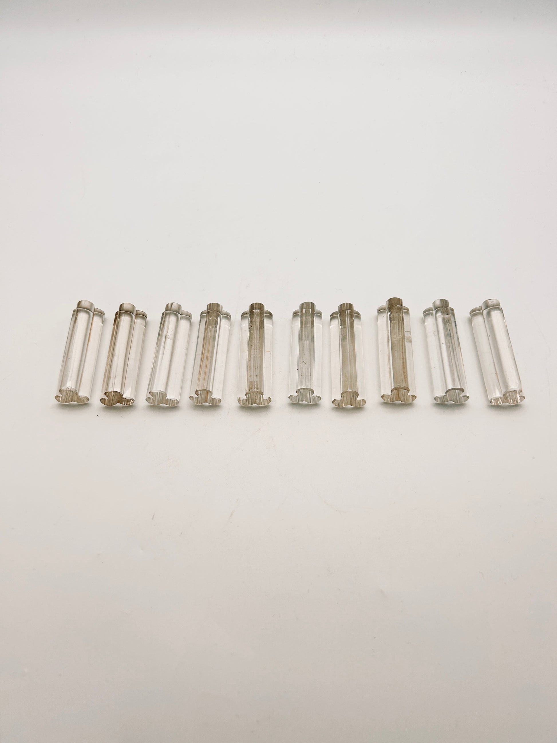Cet ensemble se compose de 10 porte-couteaux en verre, au design vintage inspiré des années 60.
