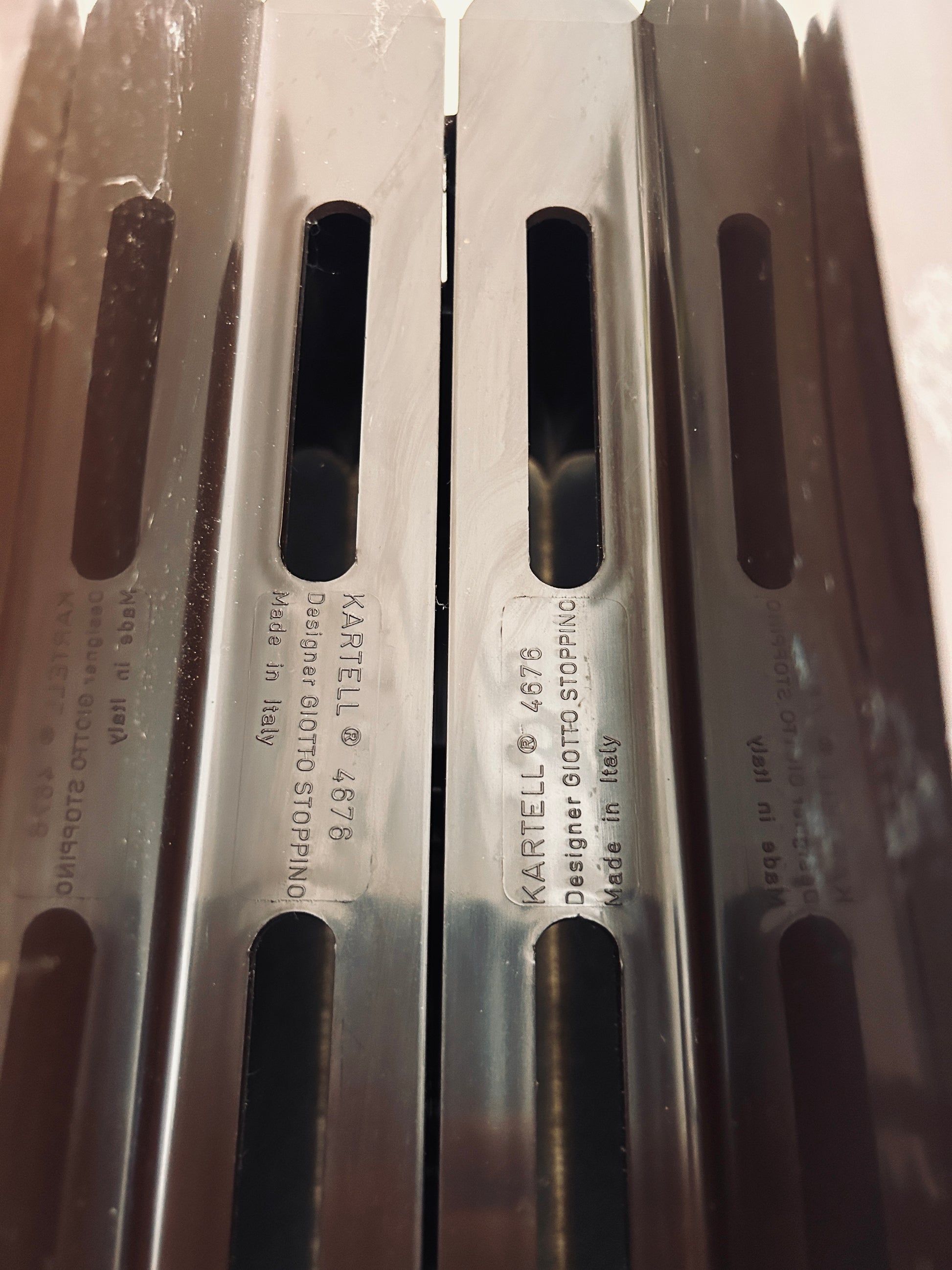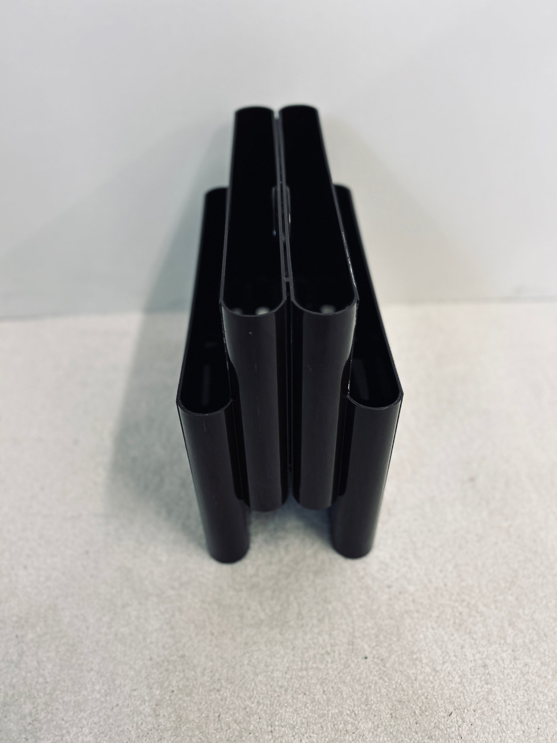 Découvrez le porte-revues marron 4 compartiments conçu par Giotto Stoppino pour Kartell, une pièce emblématique du style moderne italien et du space age qui allie fonctionnalité et design.