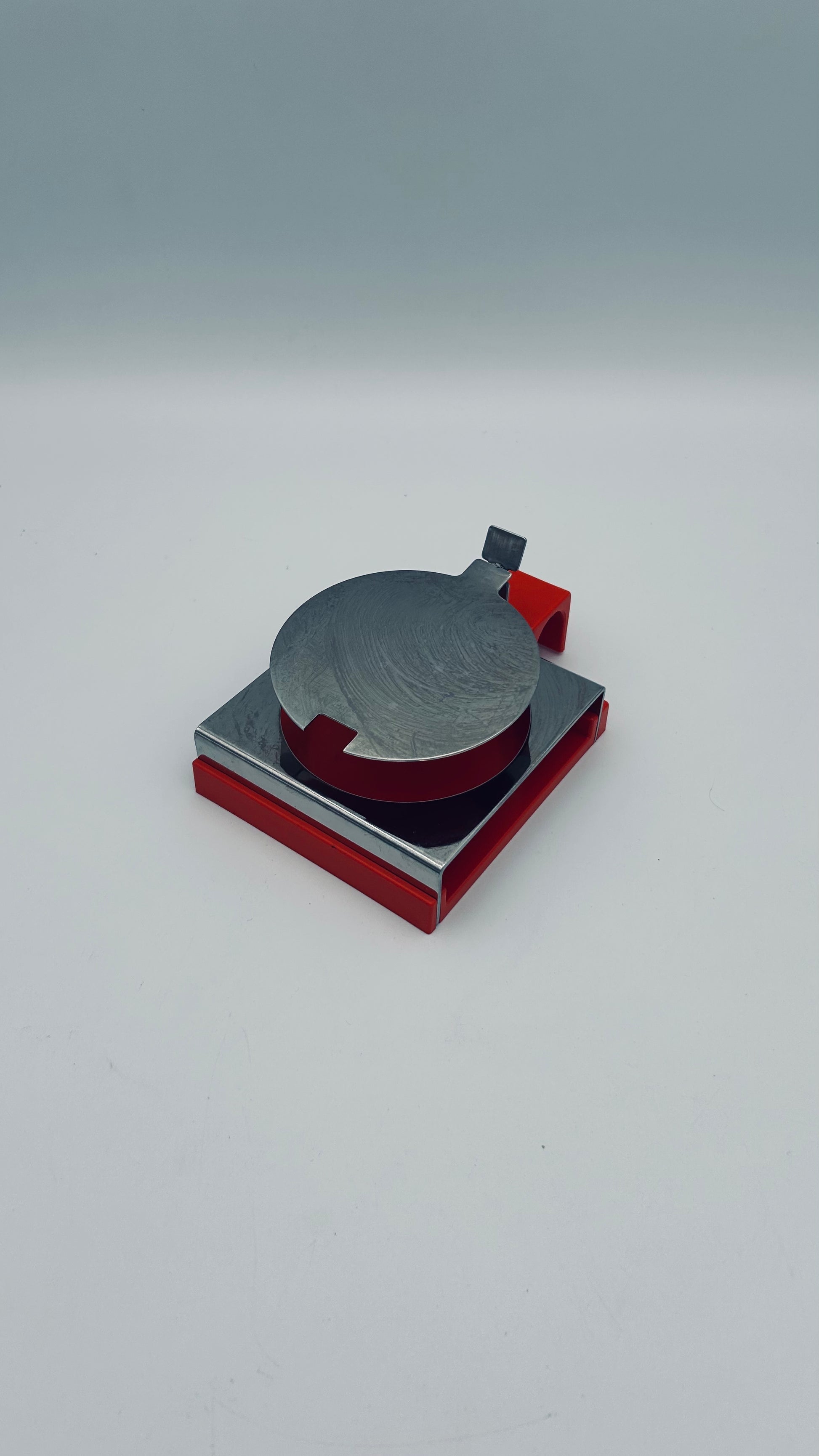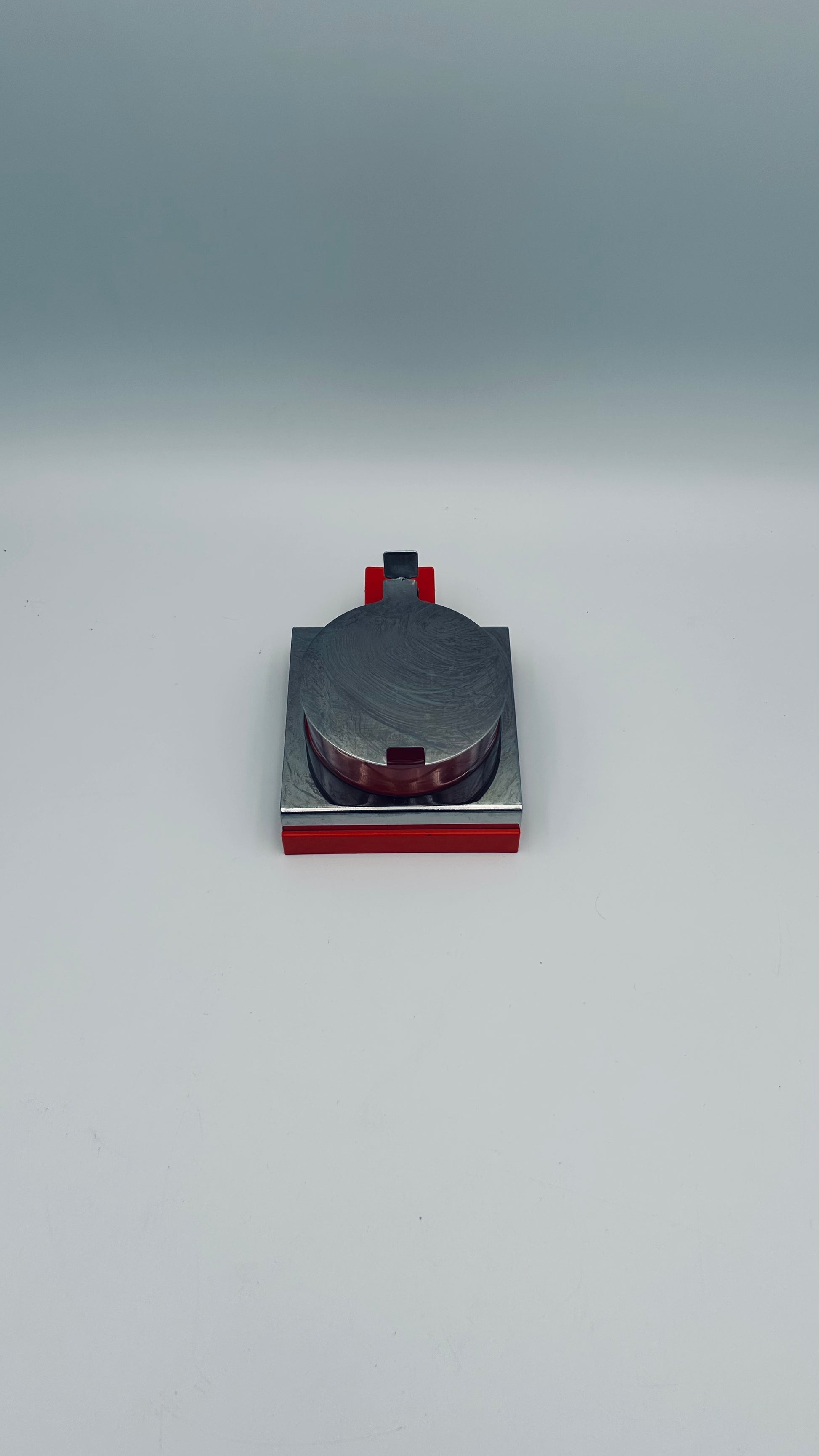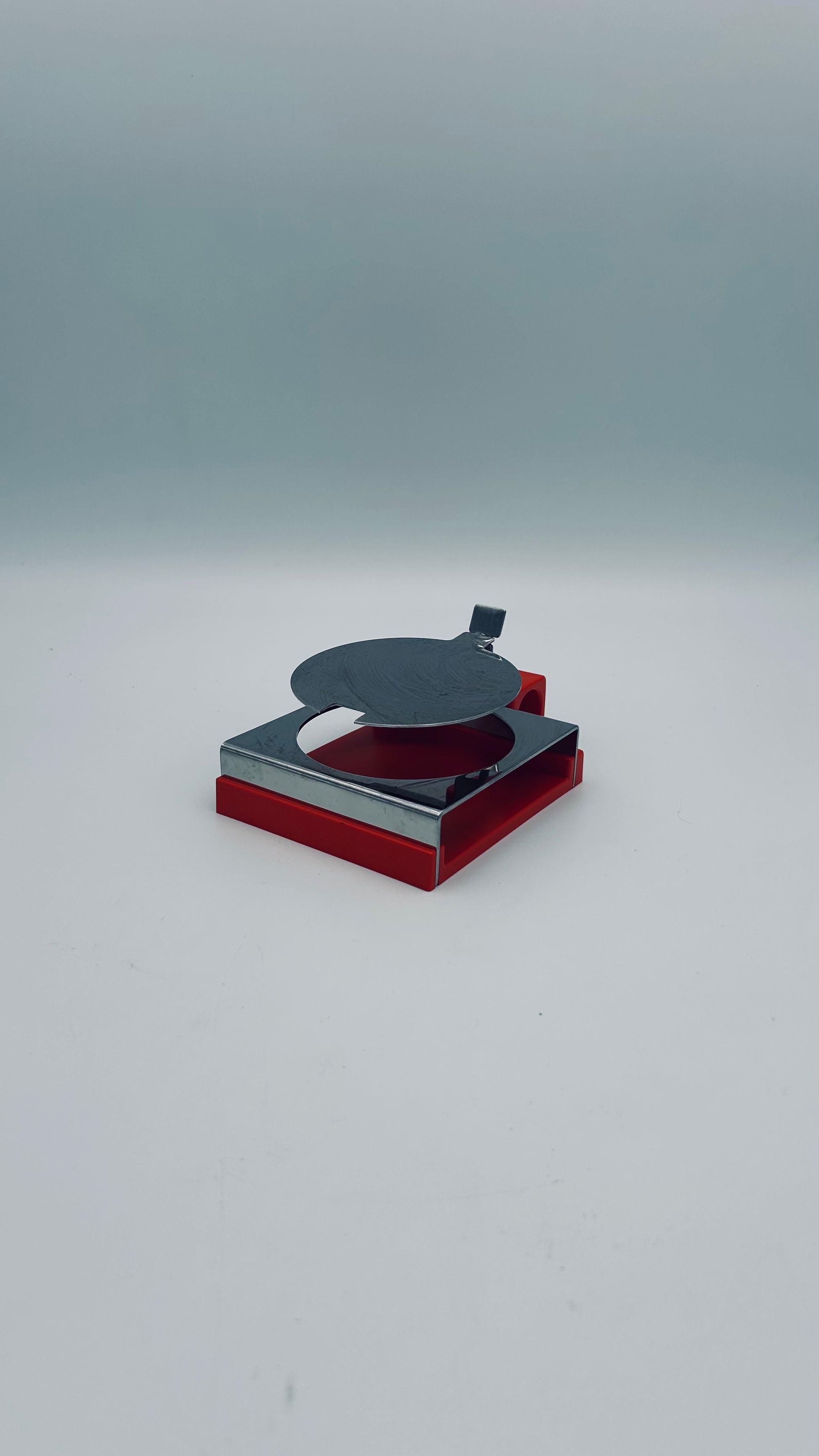 Élégant pot à parmesan en nicrosil rouge, inox et cristal, réalisé par RCR pour Abert, Italie, années 1970.