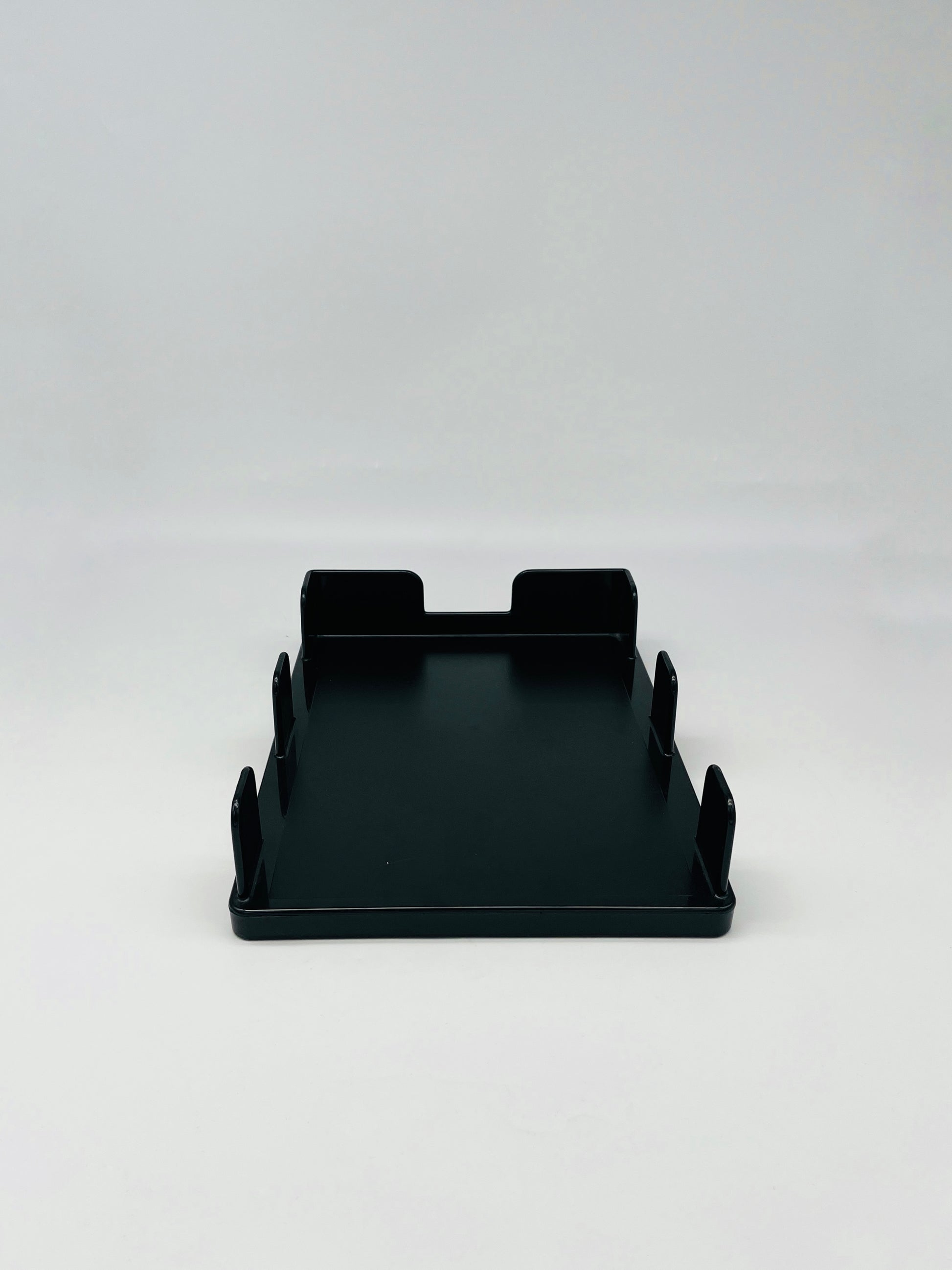 Élégant et fonctionnel, ce range-documents noir dessiné par Ettore Sottsass pour la ligne Olivetti Synthesis est une pièce emblématique du design de bureau italien des années 1970.