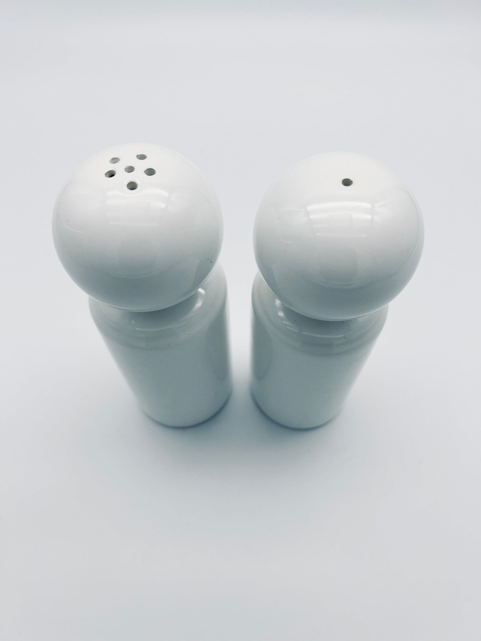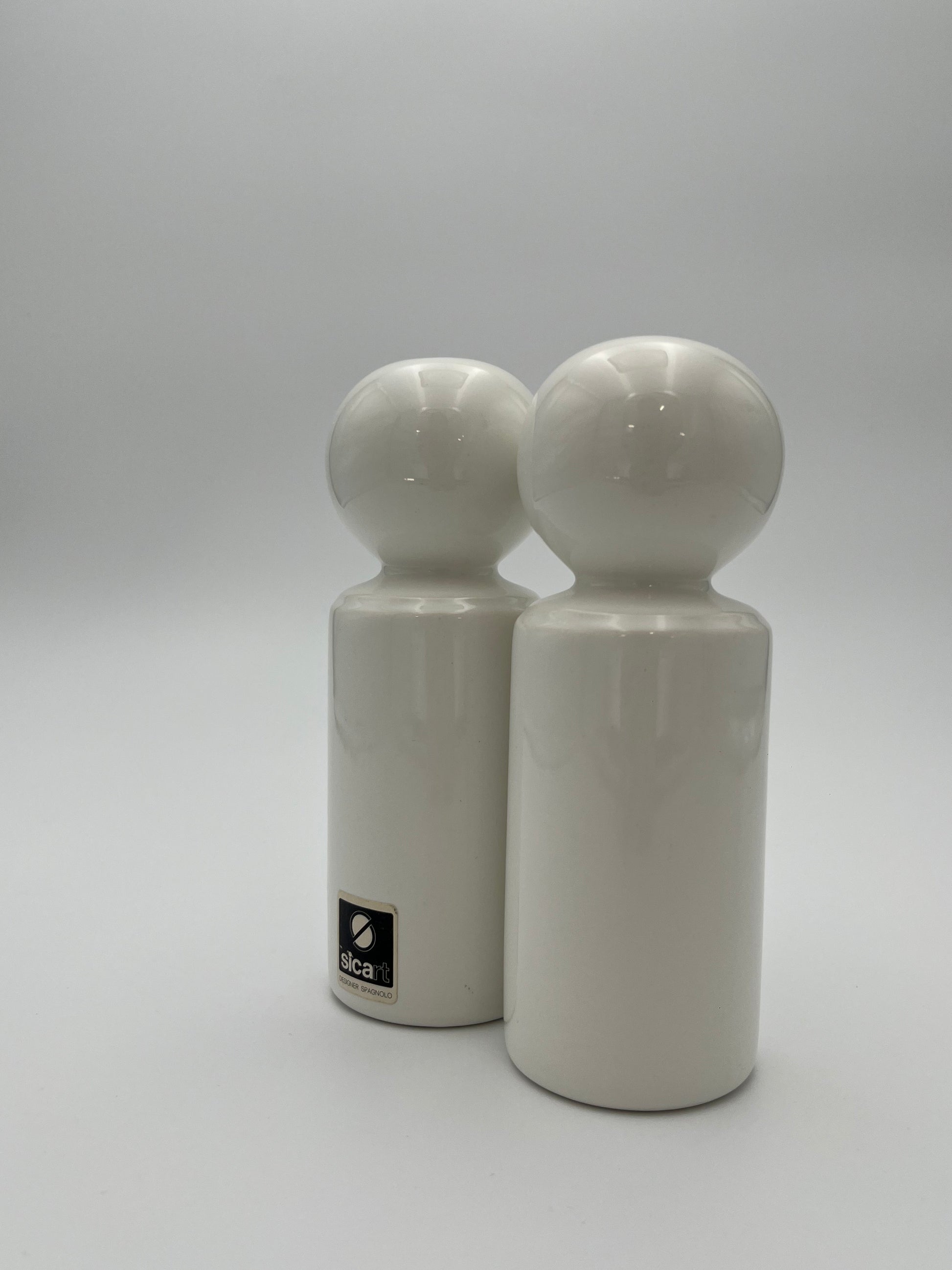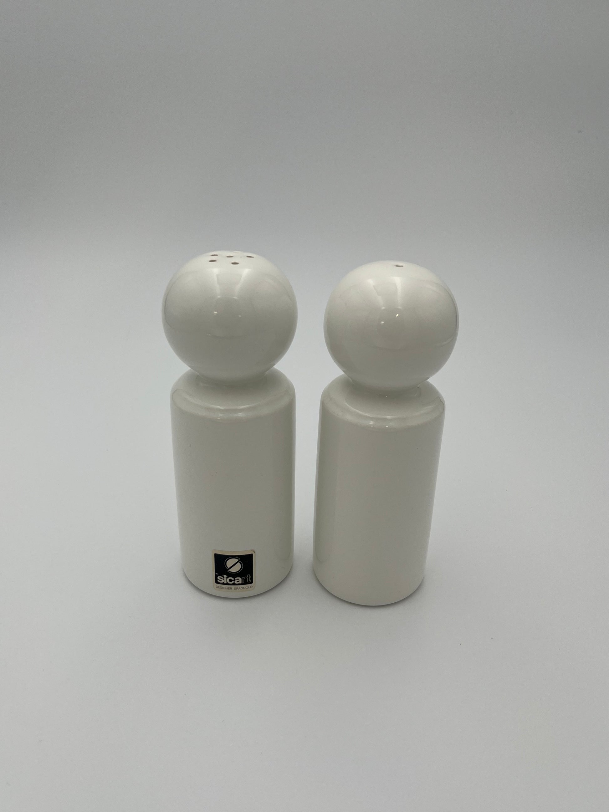 Magnifique duo de salière et poivrière en céramique blanche de la marque Sicart Cartigliano.