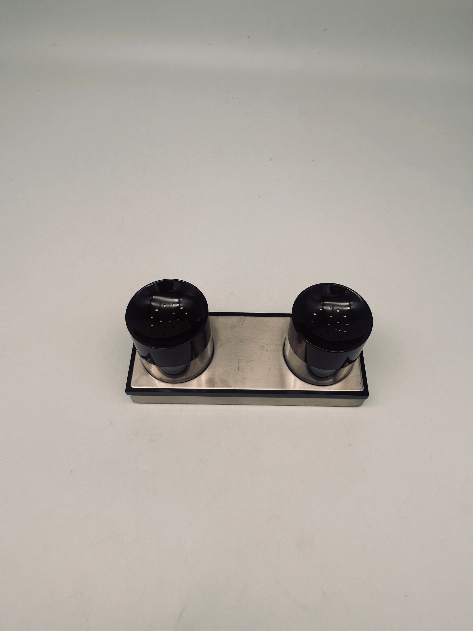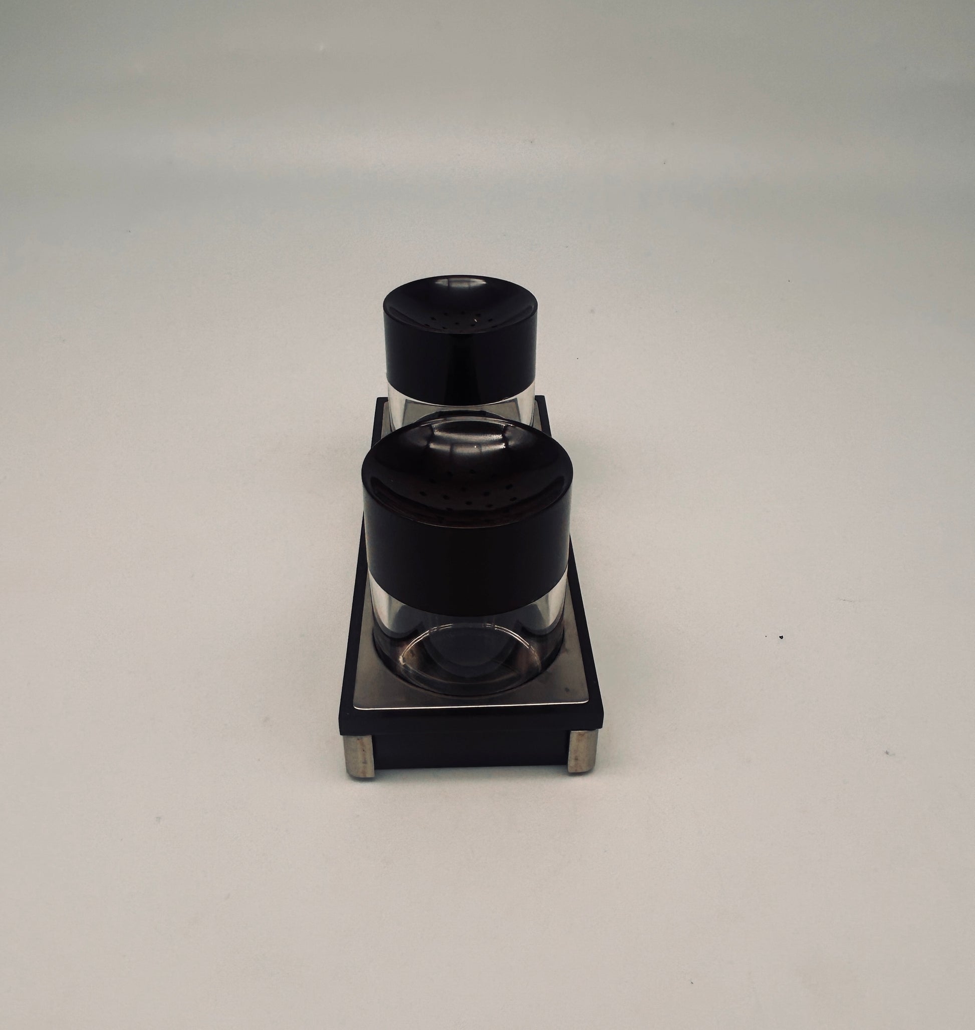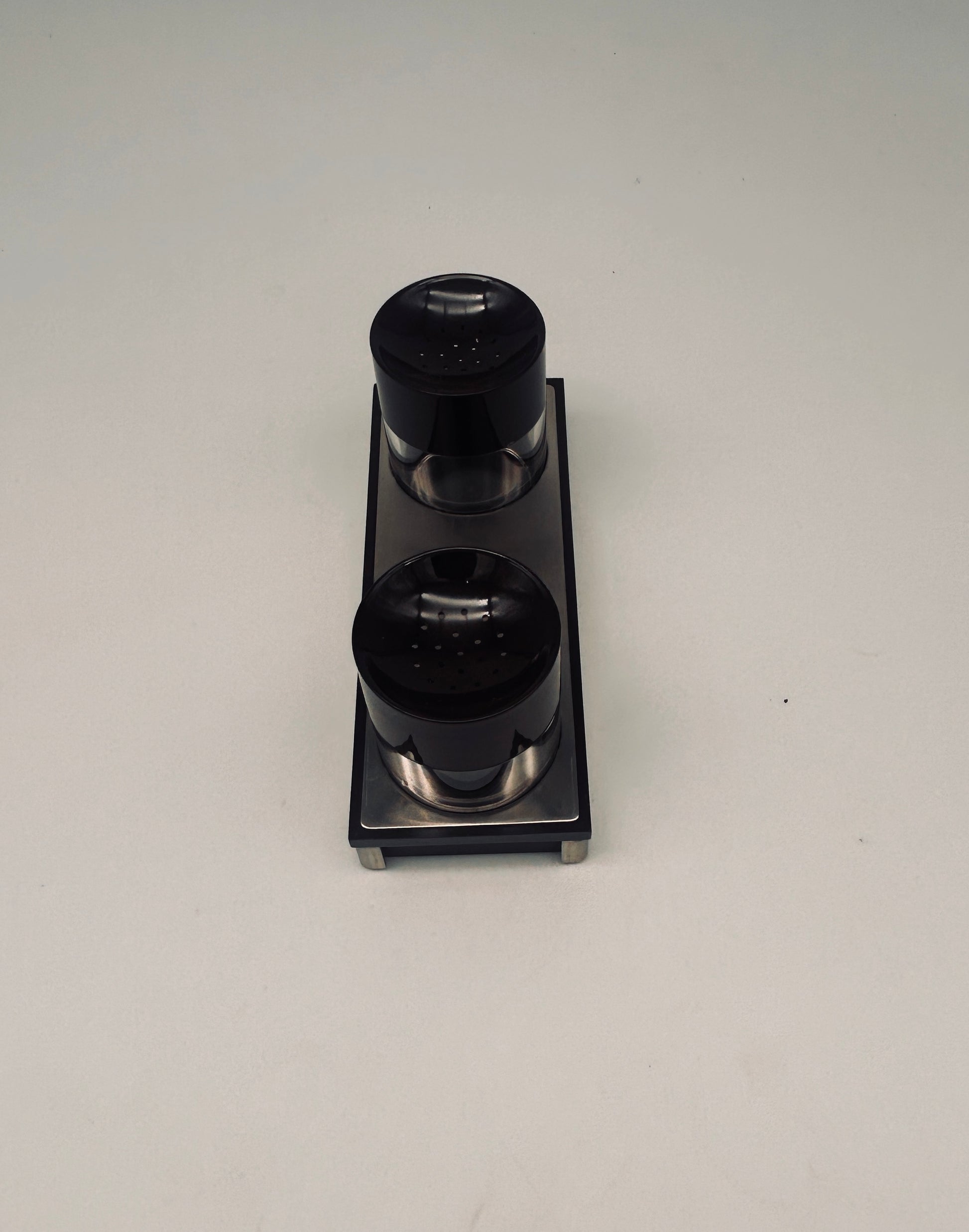 Set à condiments, sel et poivre, Roberto Sambonet, ligne Scacchiera, 70s