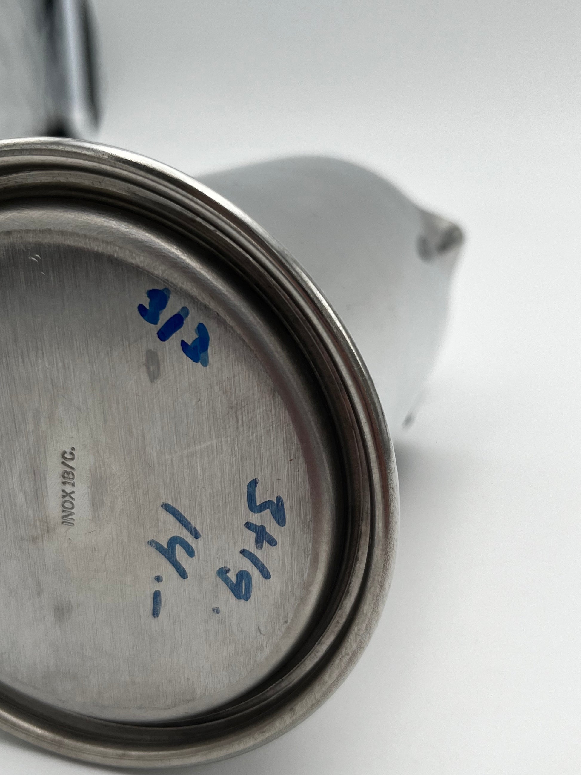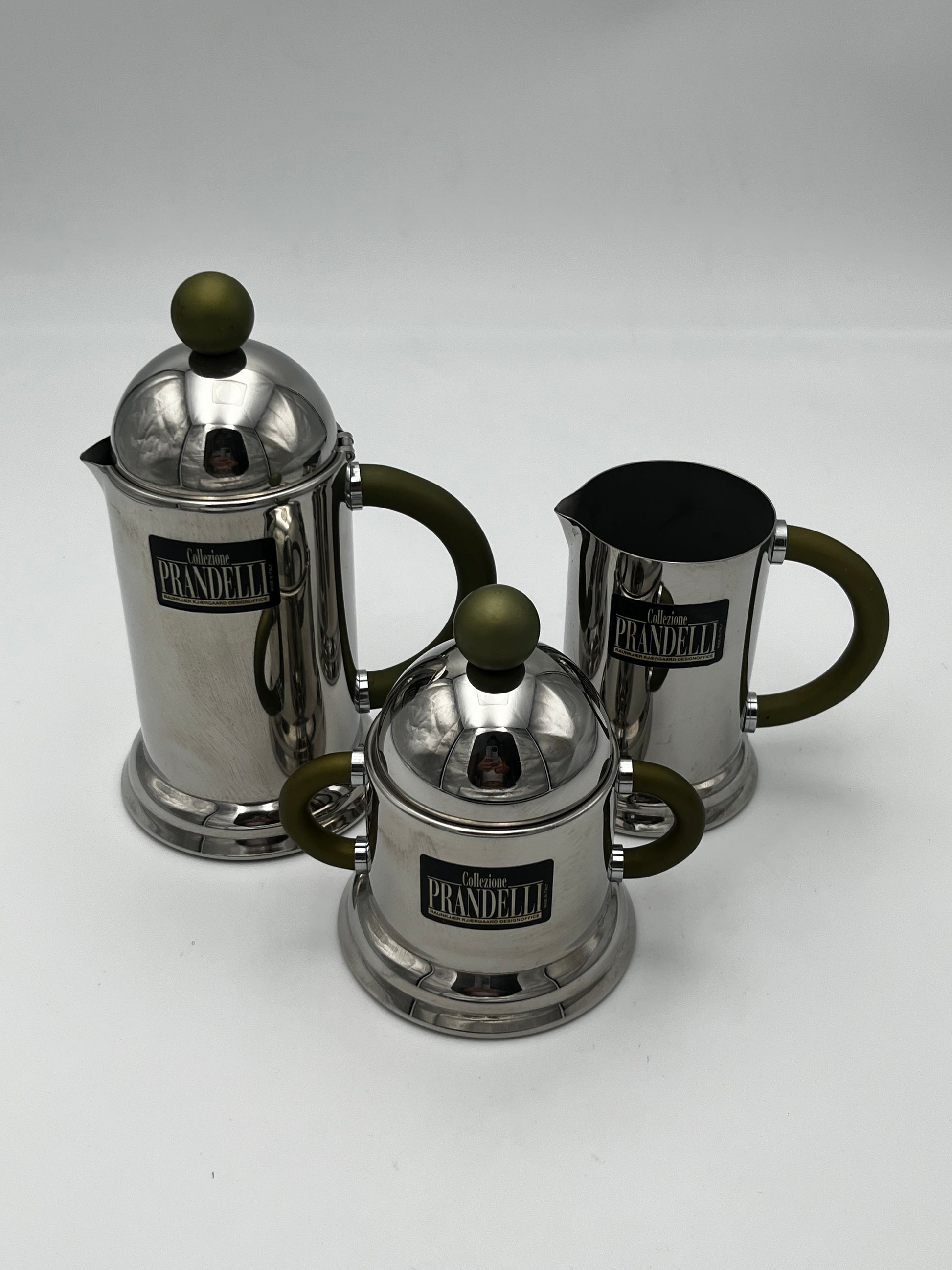 Ce set café "Collezione Prandelli" en acier inoxydable, conçu dans les années 90 en Italie pour la marque Inoxpran, est un ensemble de trois pièces élégantes.