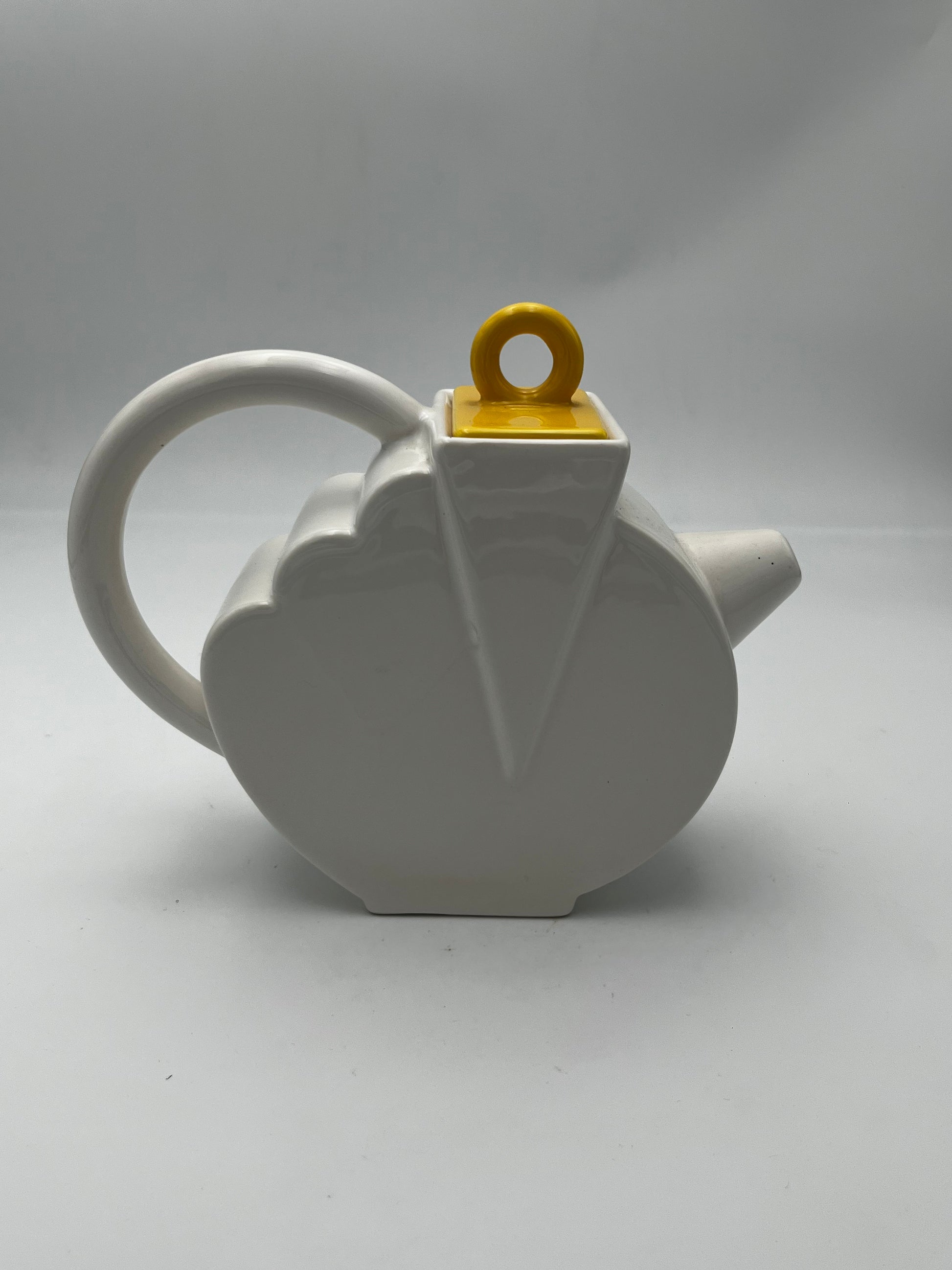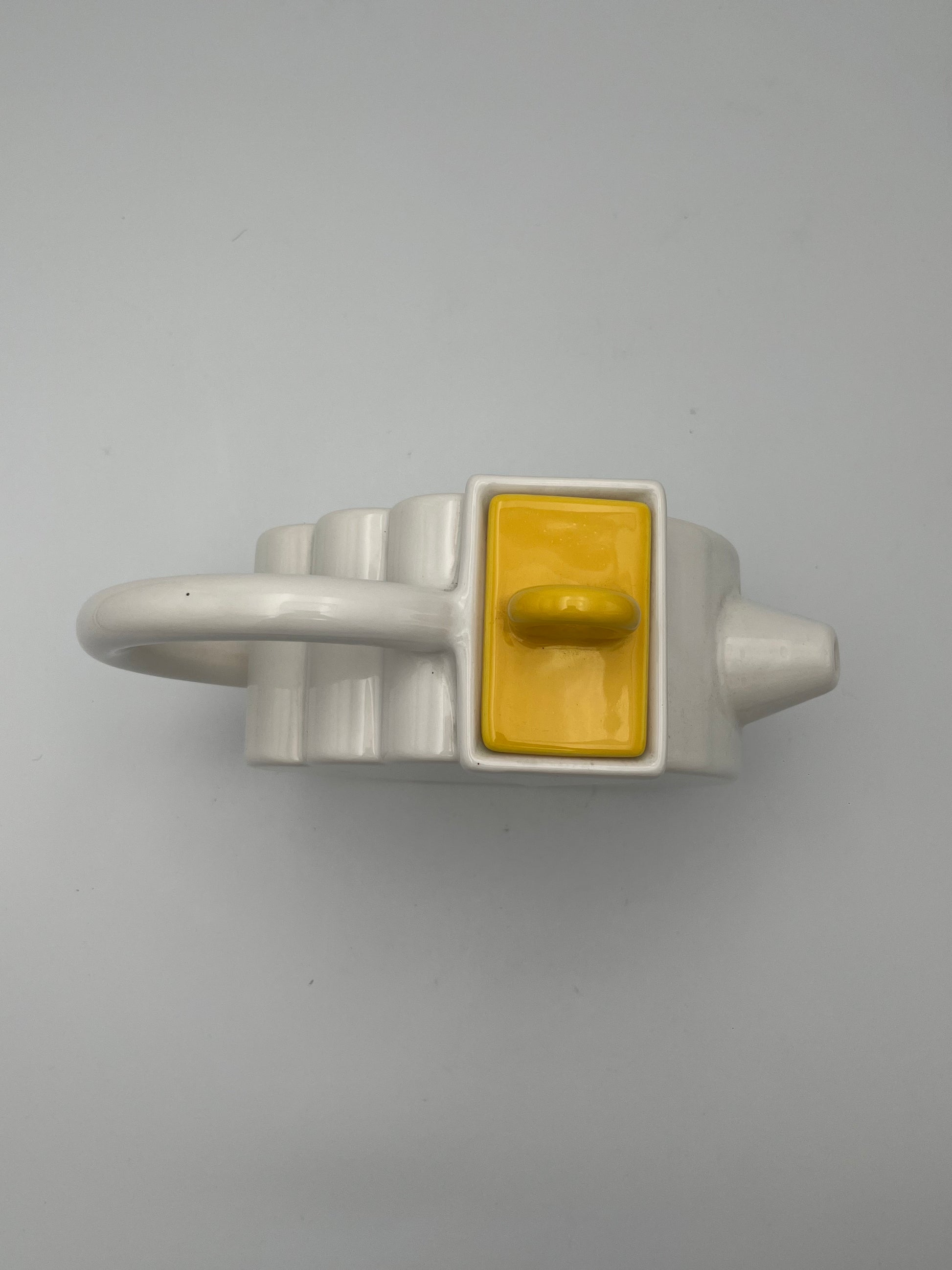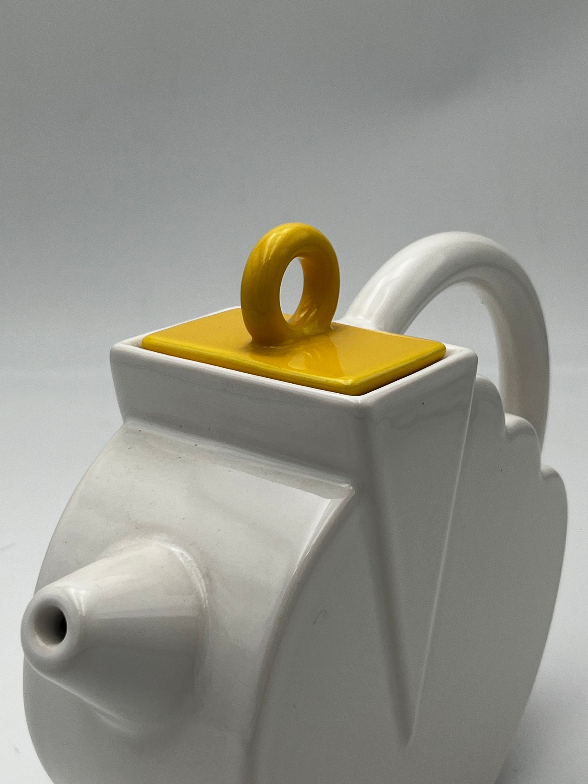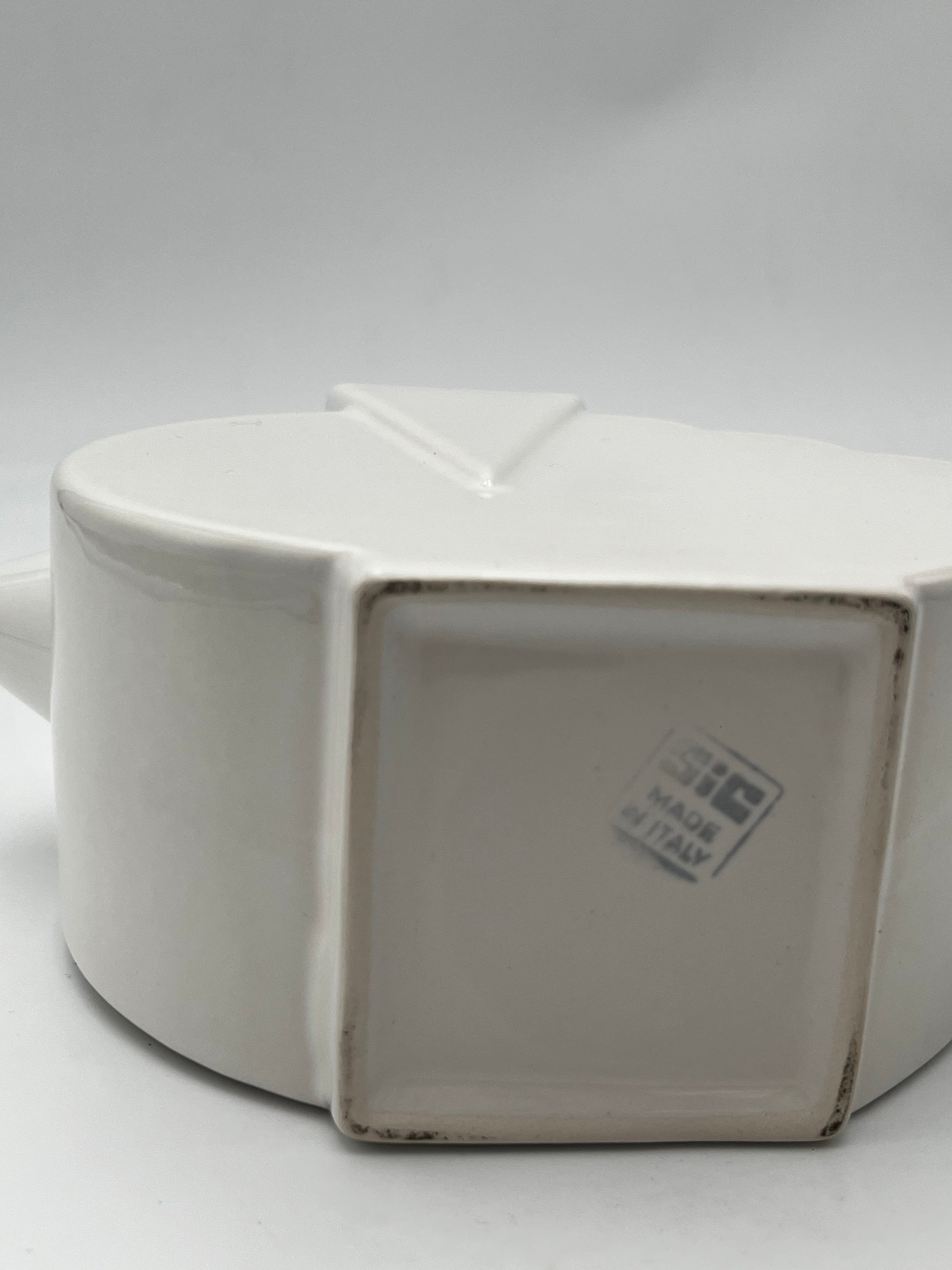 Ce set à café en céramique de couleur blanc avec details multicolores de la marque Sic, conçu dans les années 70 en Italie, est un véritable exemple de design Memphis, allié à la dolce vota italienne.