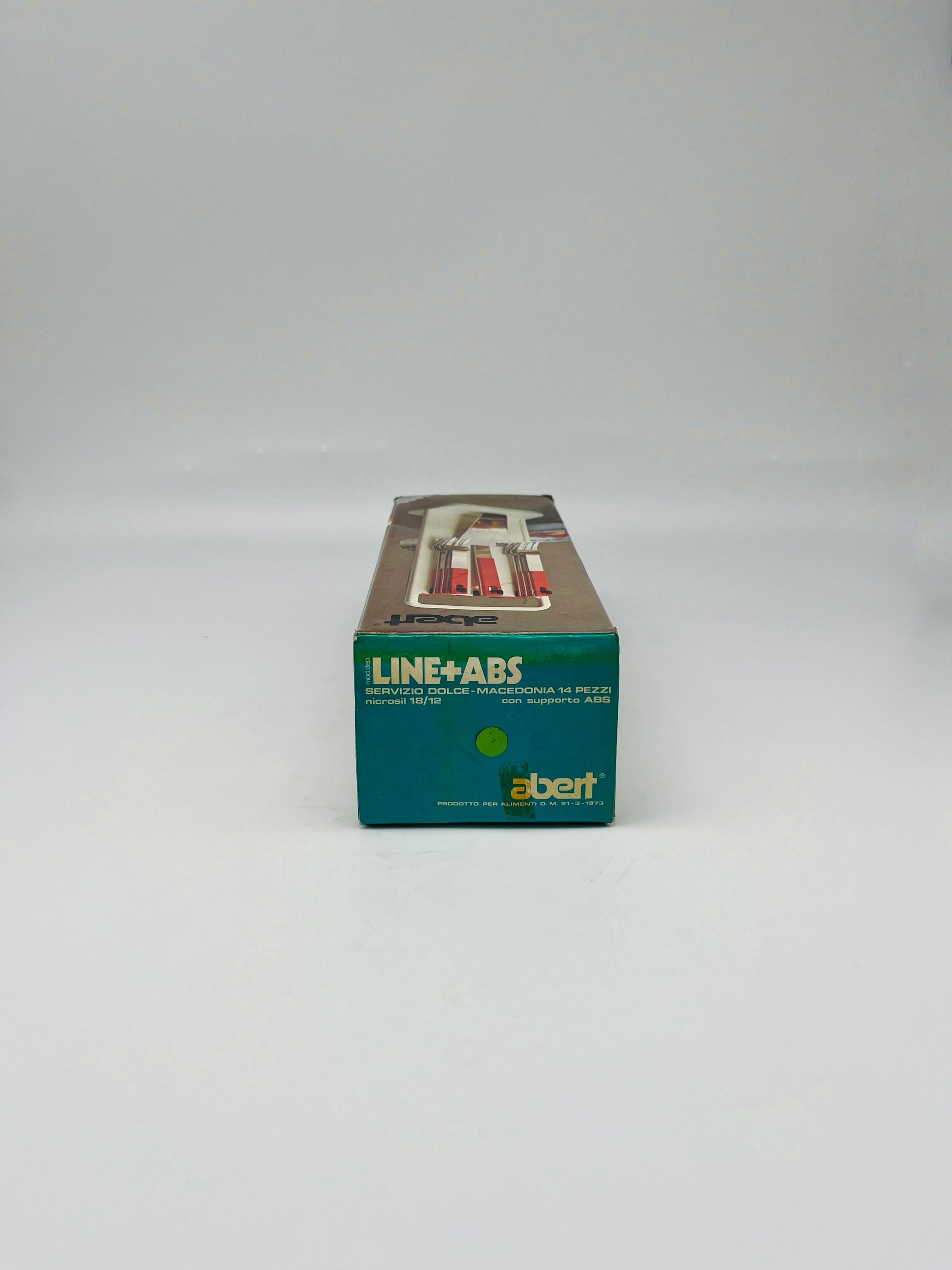 Ce set de 14 couverts avec support en métal, produit par la marque Abert datant des années 70 est un symbole du design space age.