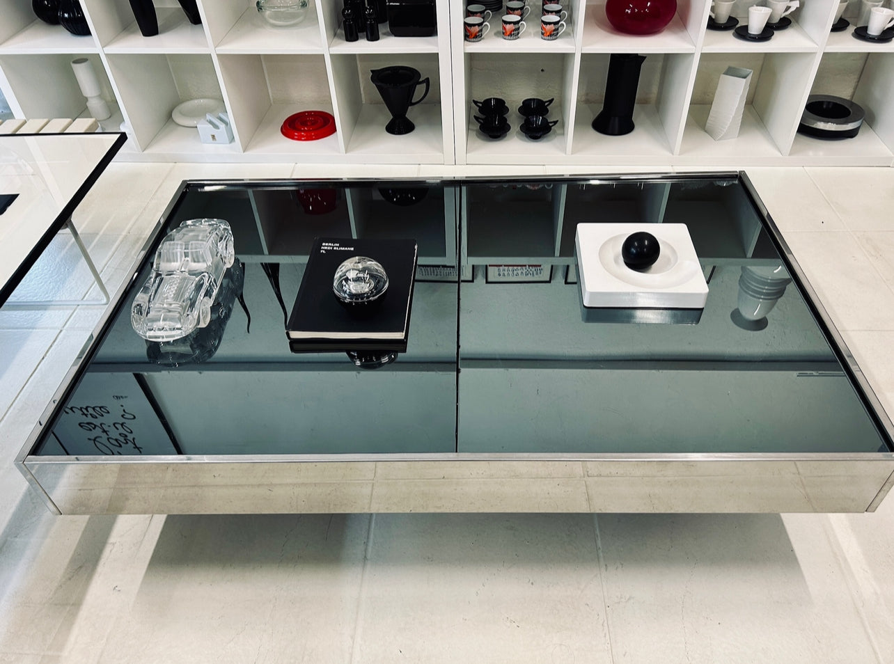 Cette table coulissante bar, signée Willy Rizzo pour l'éditeur CIDUE, incarne le glamour et l'élégance des années 1970.