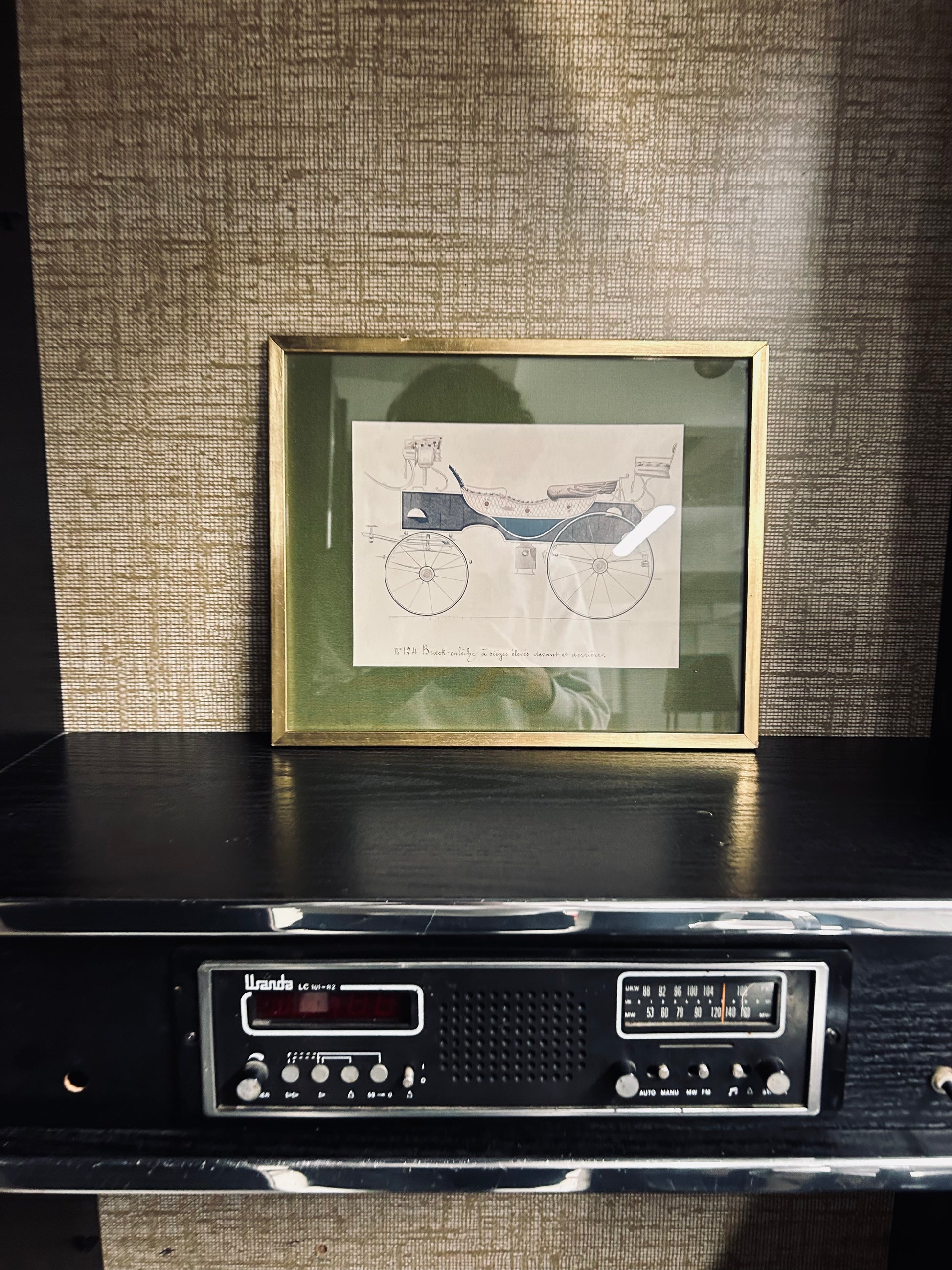 Avec des lignes épurées et une composition harmonieuse, l'œuvre évoque l'héritage du luxe et de l'artisanat français. La représentation d'un véhicule classique, la calèche, un des symboles de la marque, agrémentée de détails soignés, rappelle l'importance de la mobilité dans l'histoire d'Hermès, tout en mettant en avant l'esthétique intemporelle qui traverse les époques.