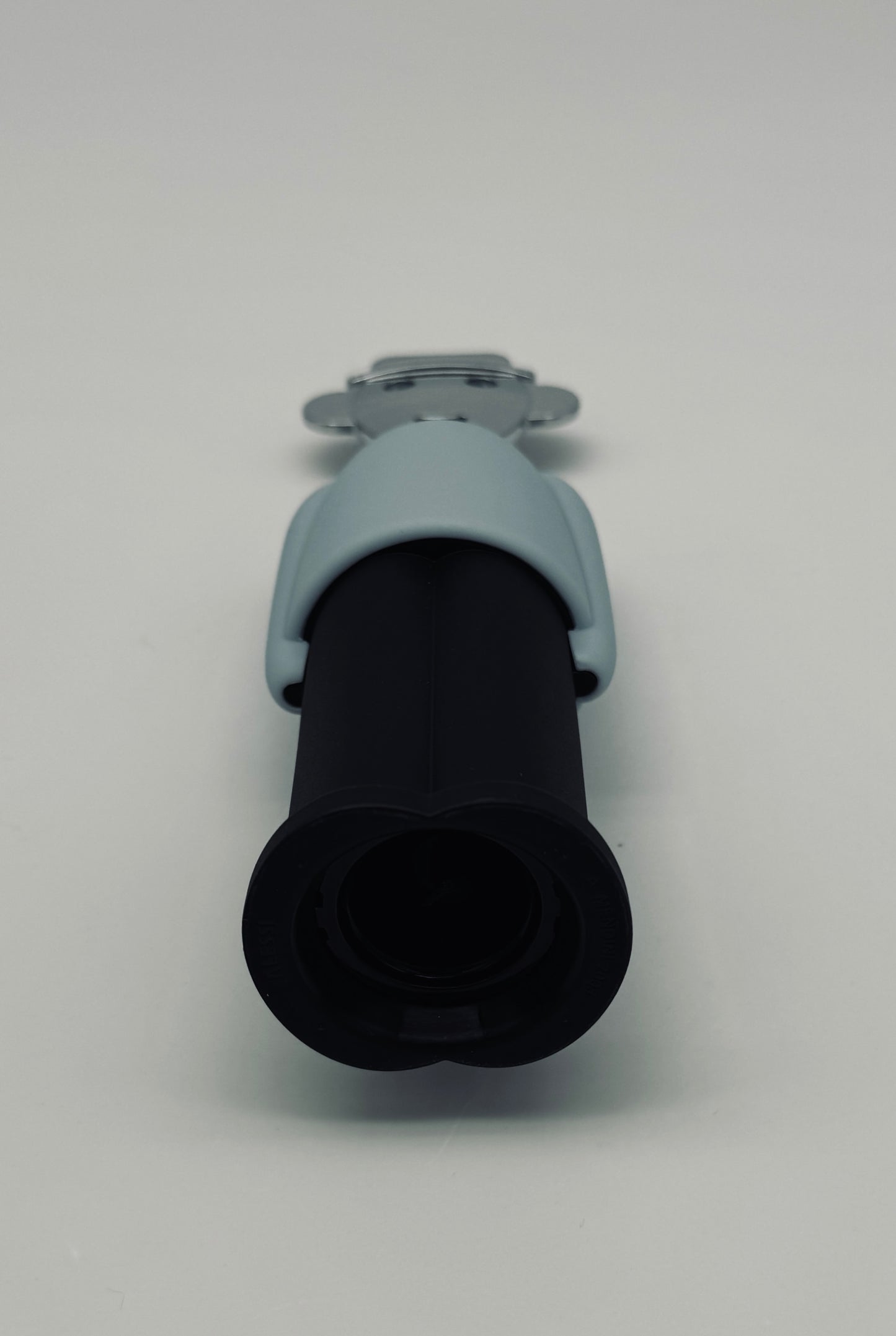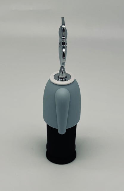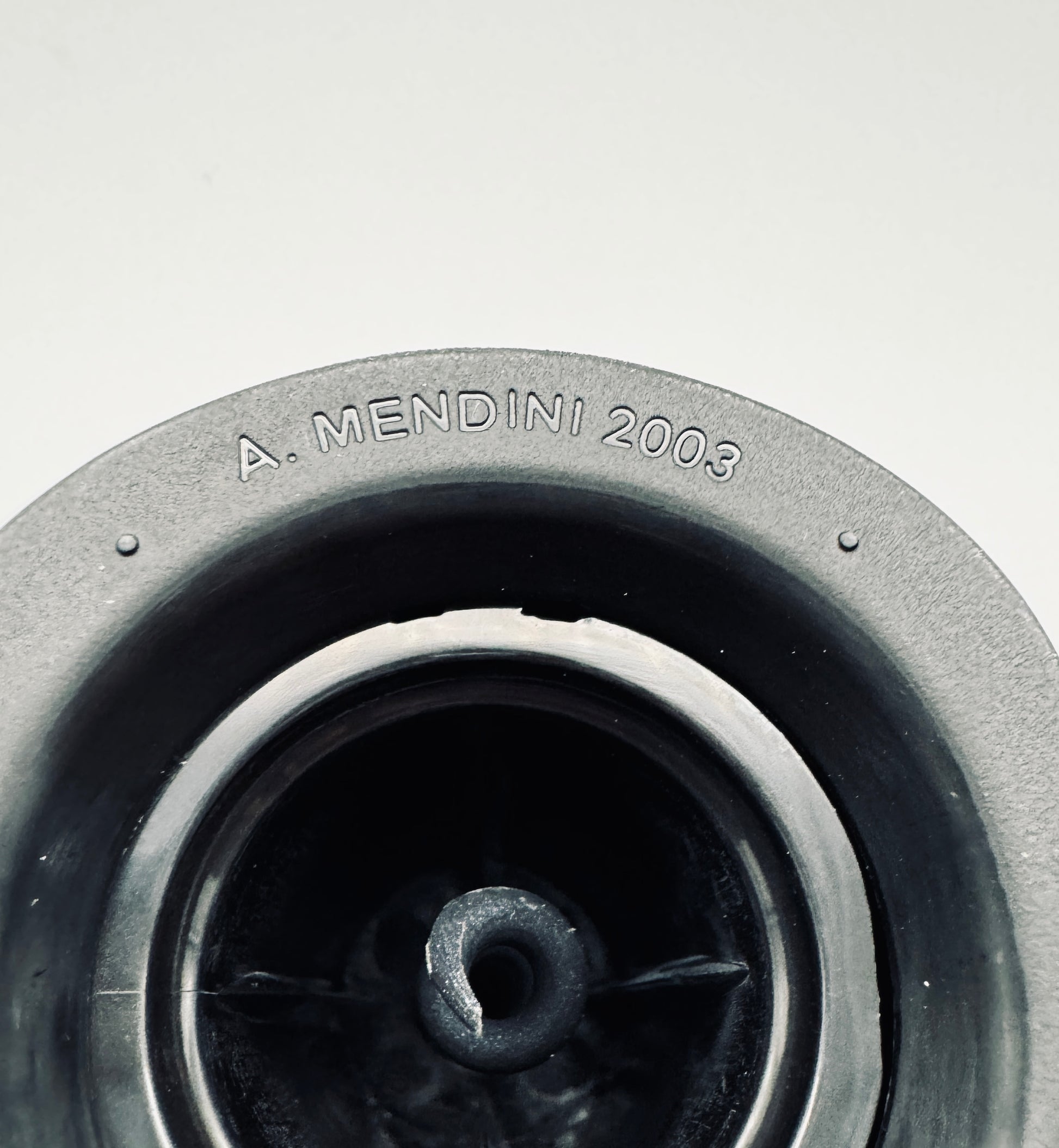 Ce tire-bouchon bicolore en gris et noir, signé Alessandro Mendini pour Alessi, incarne parfaitement l'esthétique minimaliste et sculpturale du designer.