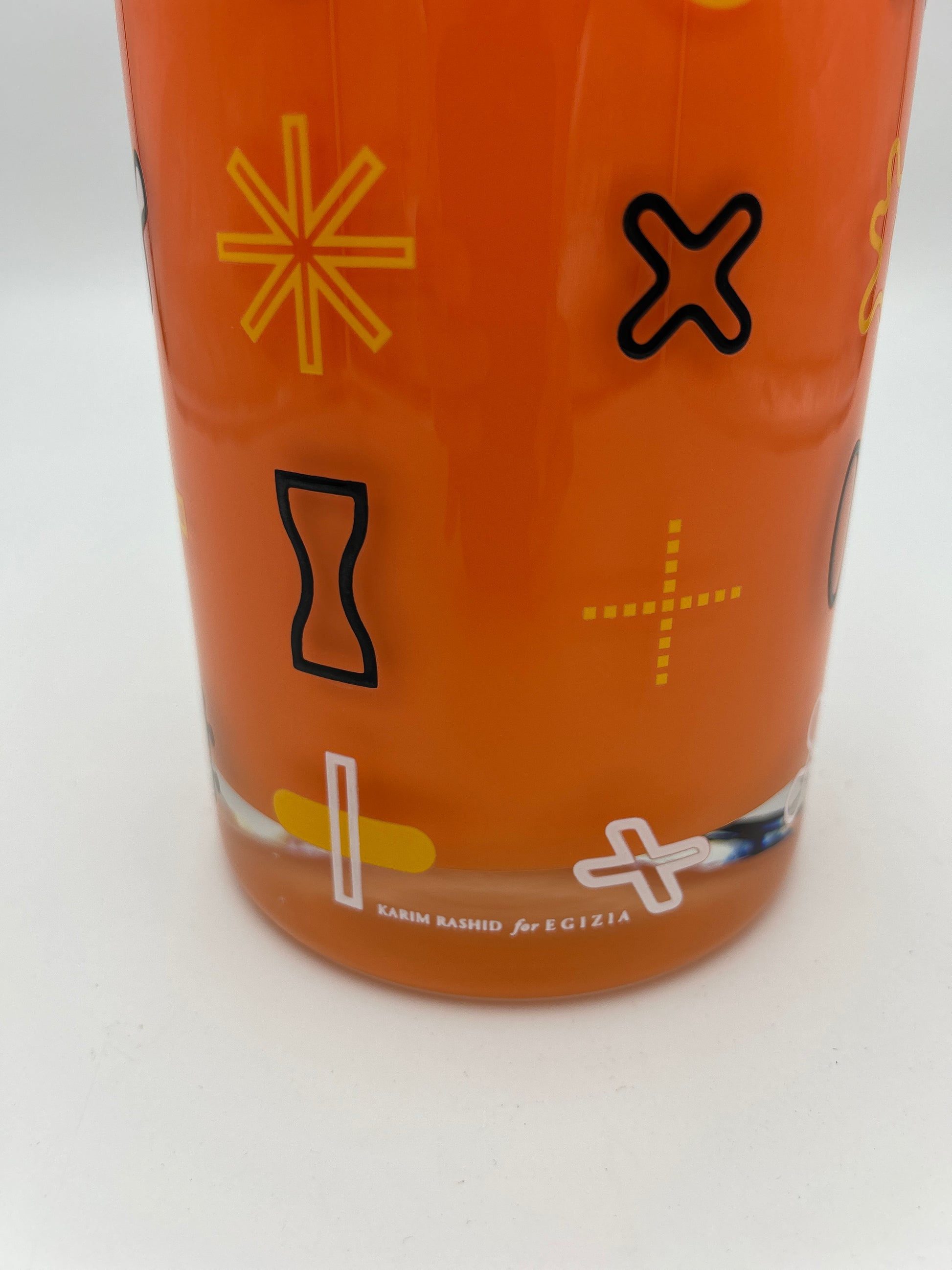 Ce vase orange est une création du célèbre designer Karim Rashid, fabriqué en Italie par la maison Egizia ( Ettore Sottsass associati ) en 2003.