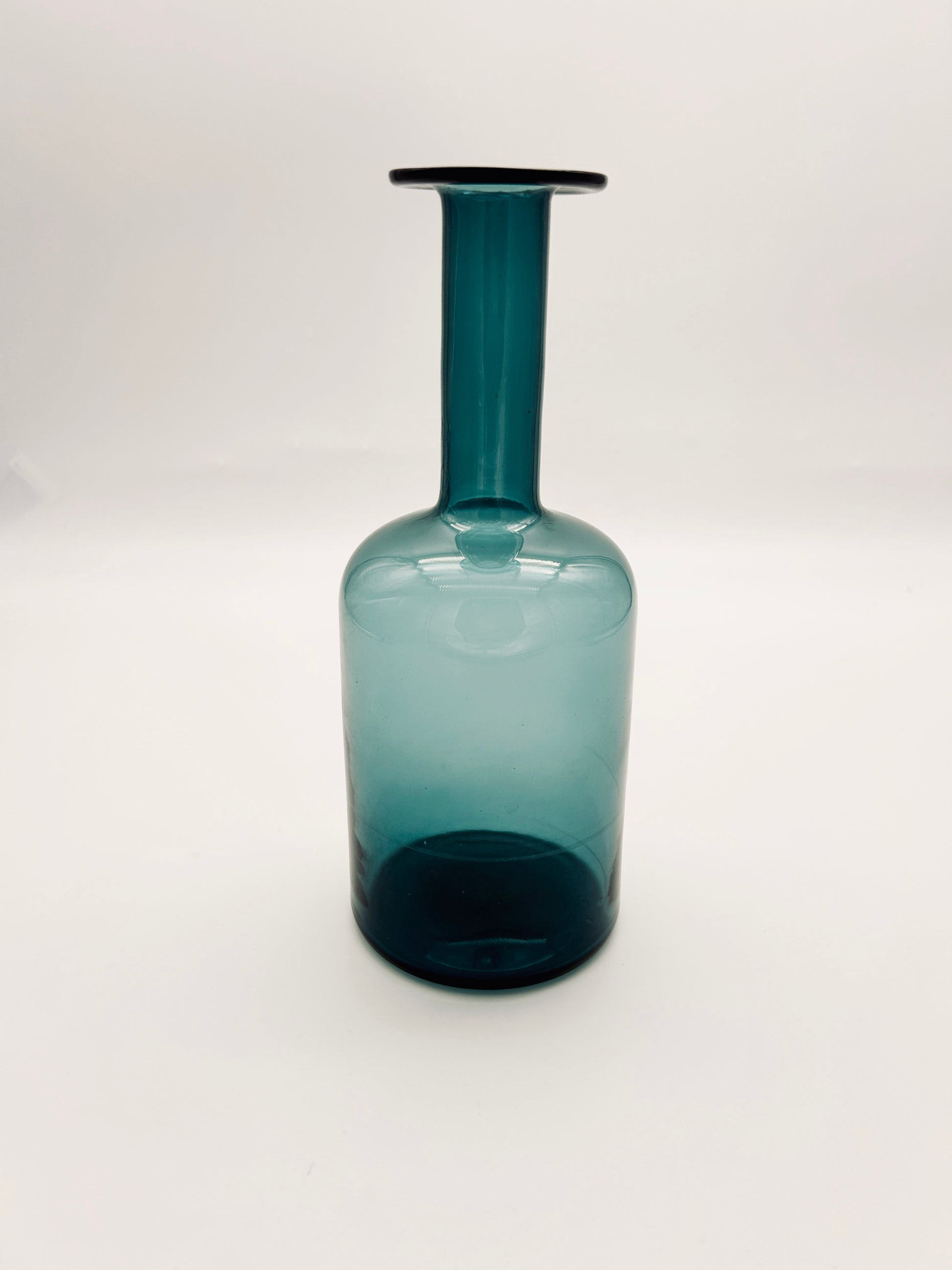 Plongez dans l'élégance scandinave avec ce vase bleu, signé par le maître du design Otto Brauer pour Holmegaard dans les années 1960.