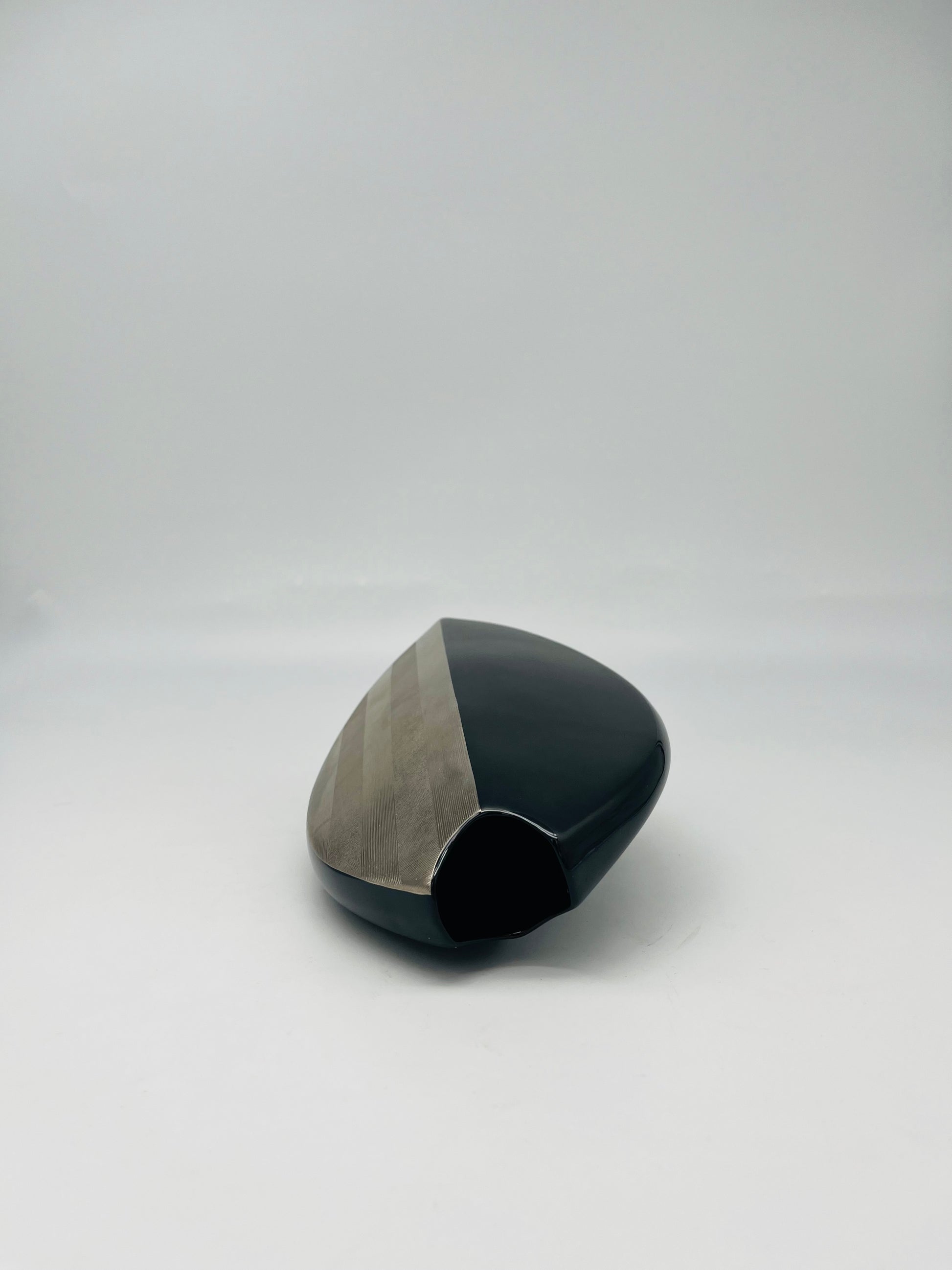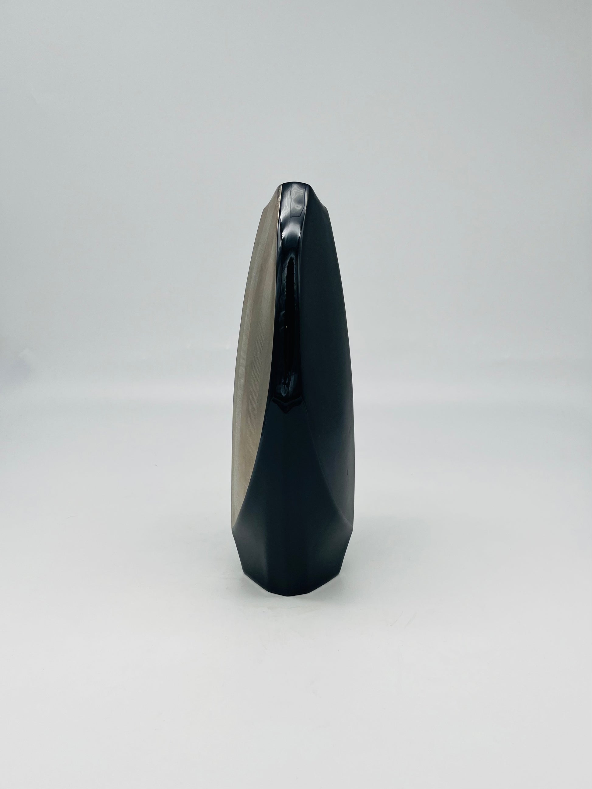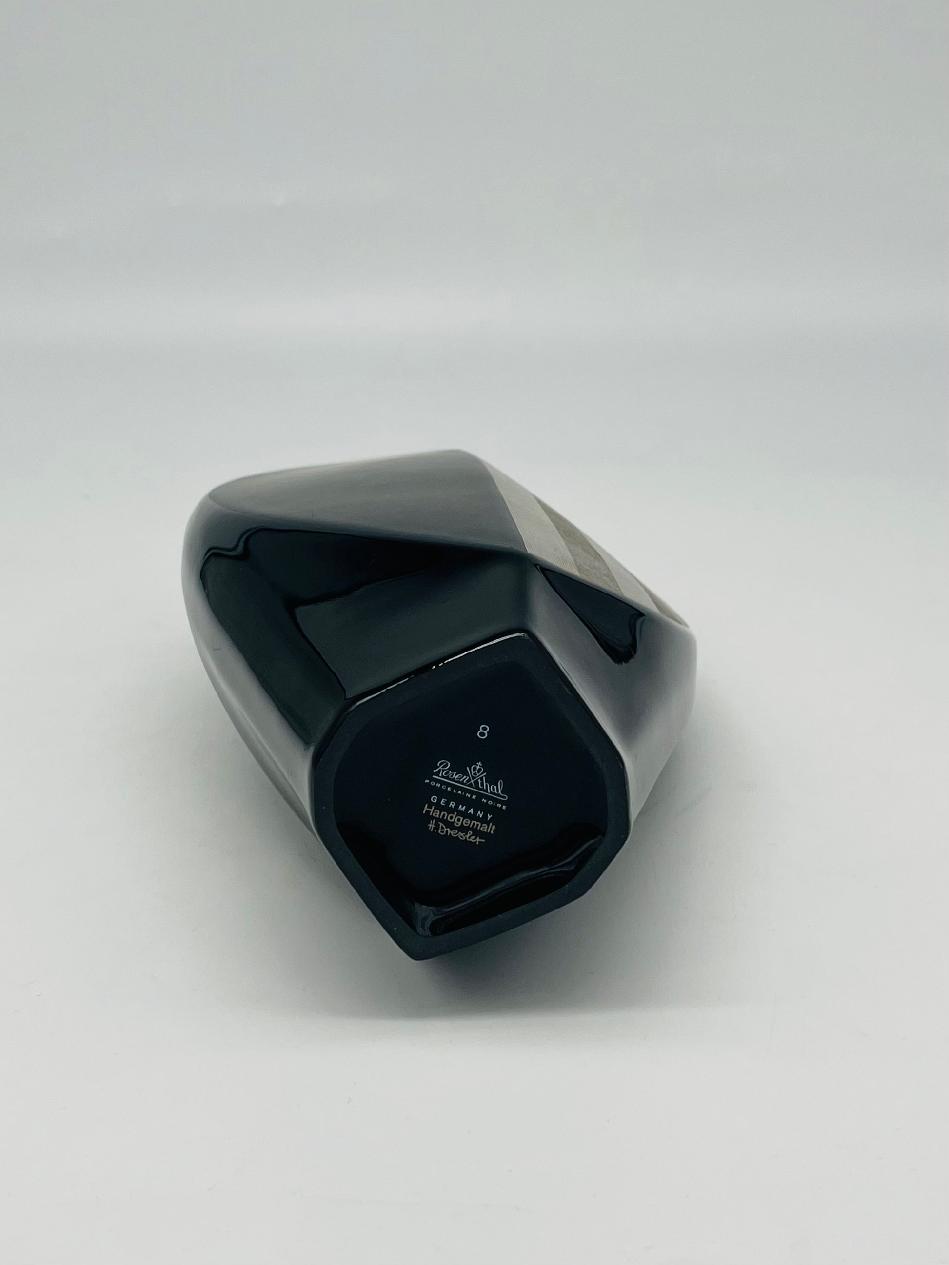 Ce grand vase Rosenthal en porcelaine noire, designé par Helmut Dresler dans les années 80 est une pièce peu commune avec sa décoration platine.