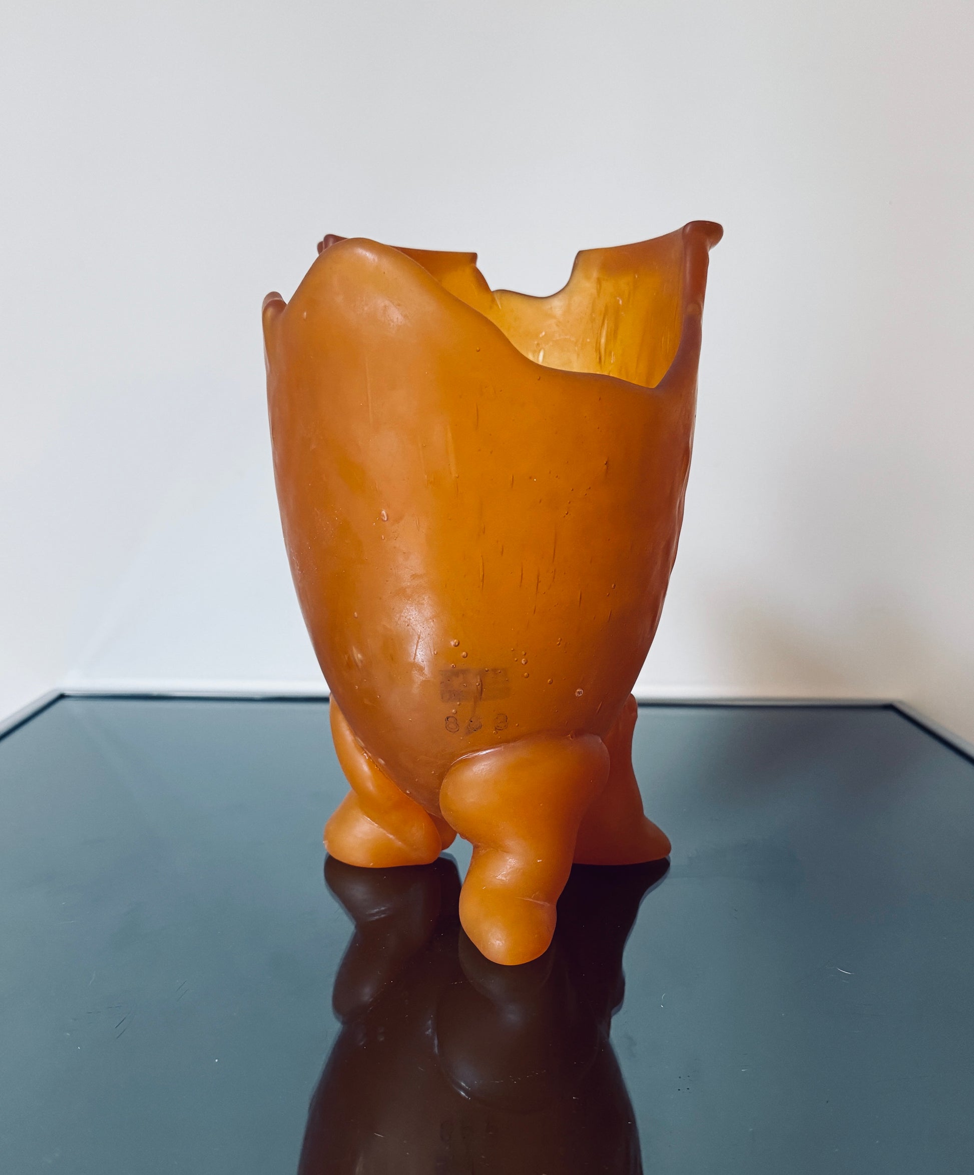 Ce vase en résine ocre signé Gaetano Pesce, issu de la première édition de la collection Fish Design, est une pièce emblématique de l'avant-garde du design contemporain.