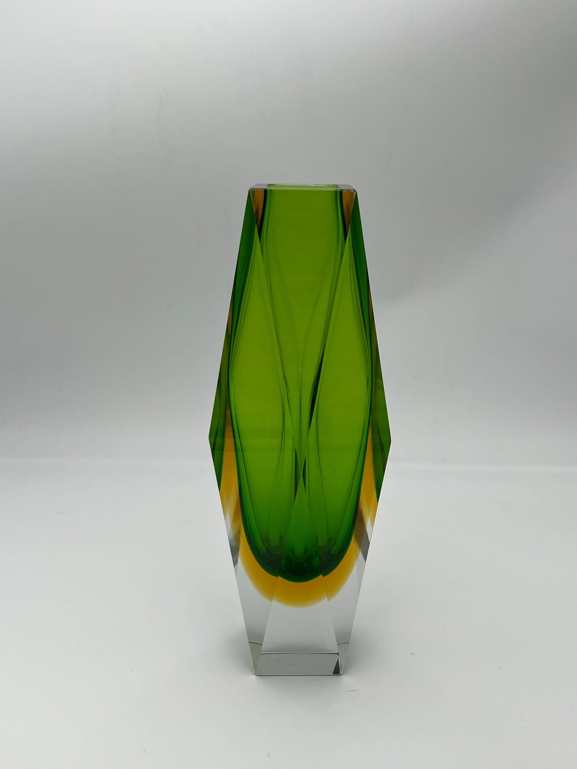 Vase vert sommerso, verre de Murano, Flavio Poli, Italie, 60s